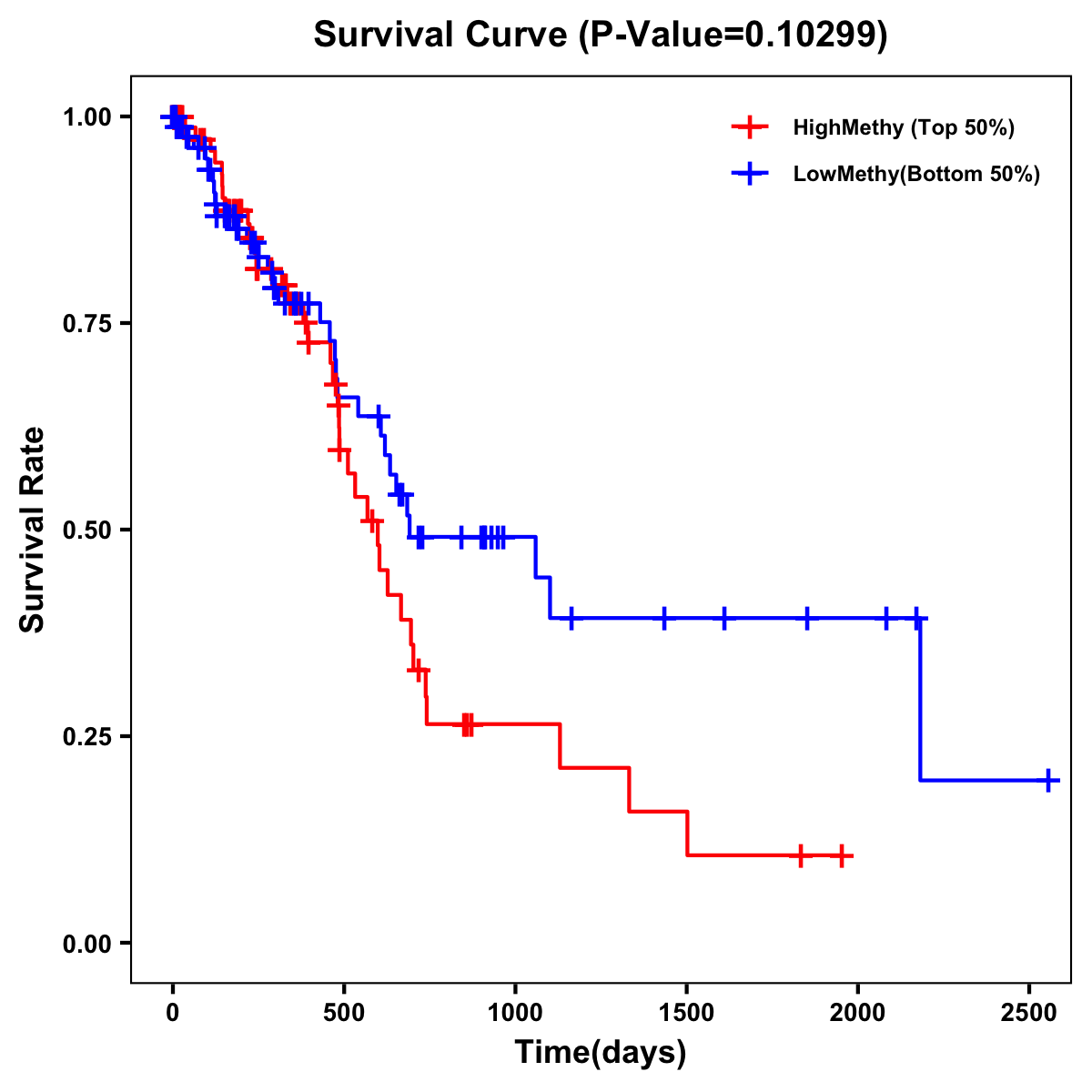 | Survival Curve of Pancreatic Cancer of Expression | Survival Curve of Pancreatic Cancer of Methylation | ||