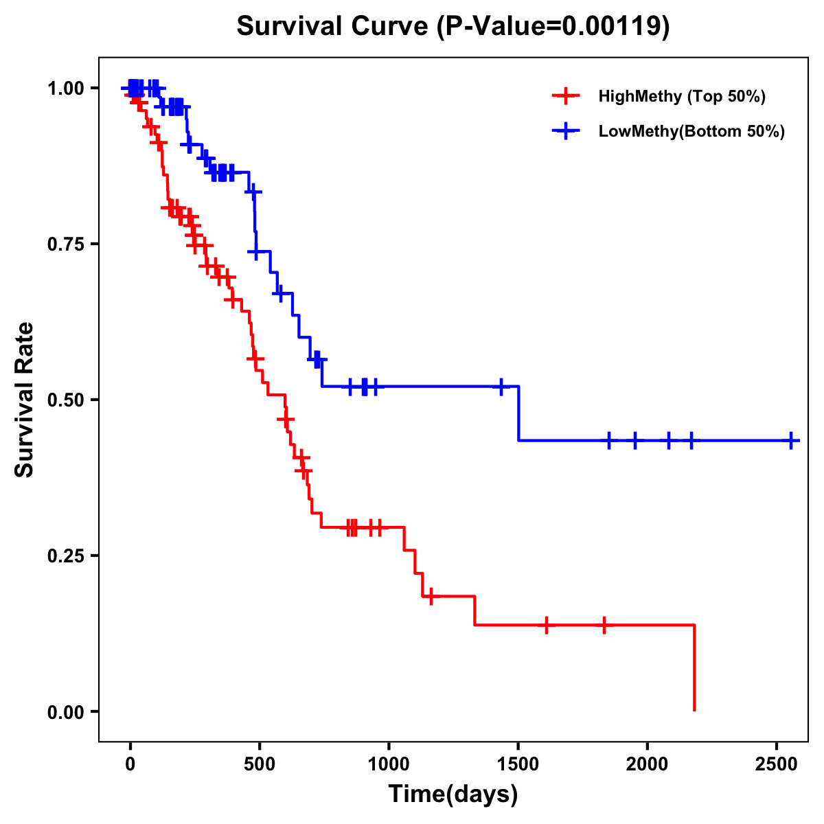 | Survival Curve of Pancreatic Cancer of Expression | Survival Curve of Pancreatic Cancer of Methylation | ||