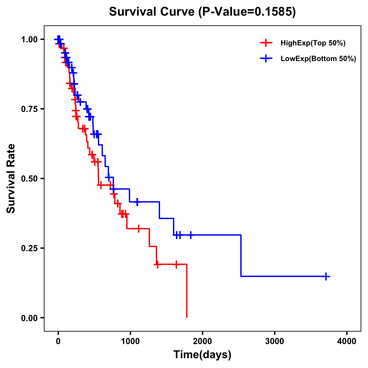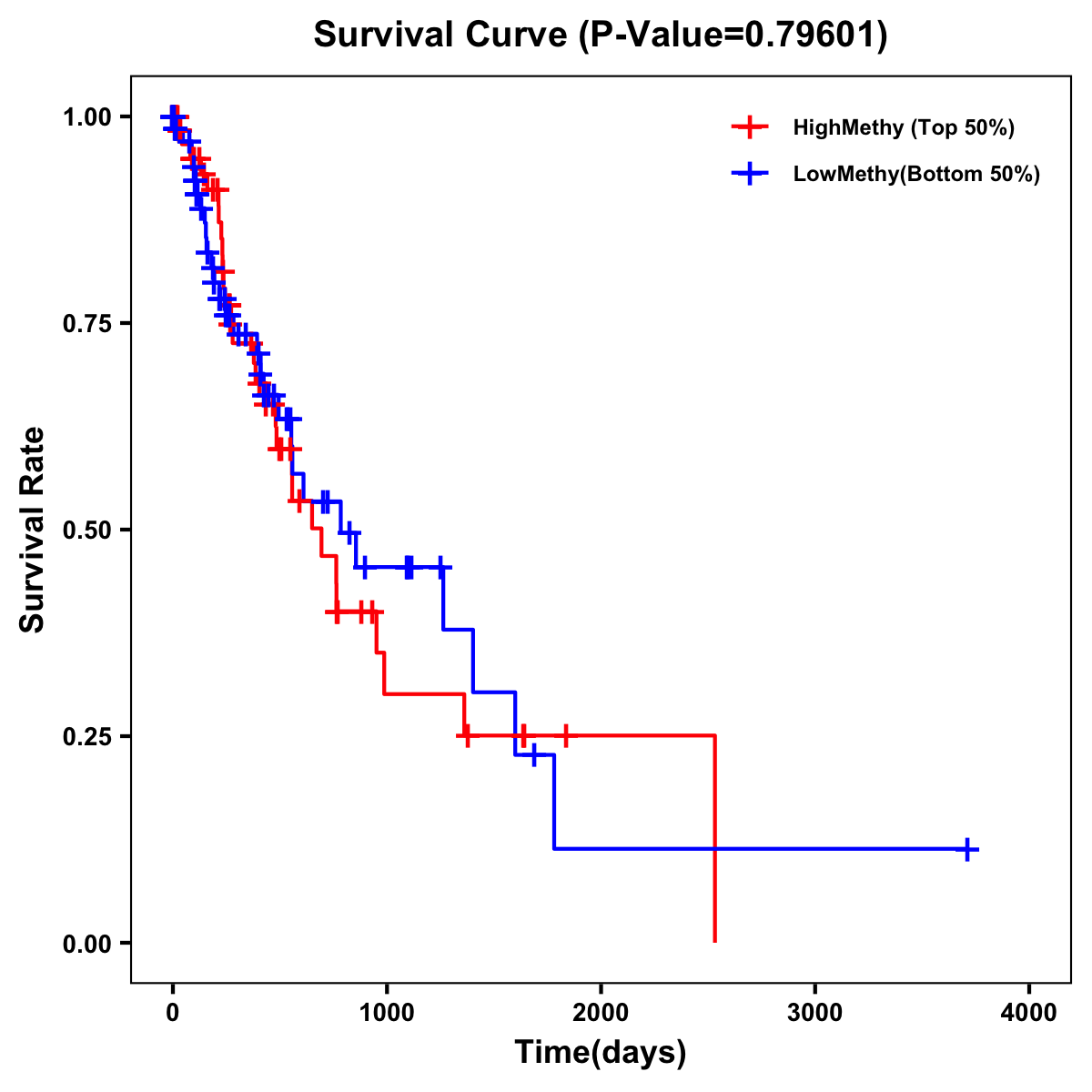 | Survival Curve of Esophagus Cancer of Expression | Survival Curve of Esophagus Cancer of Methylation | ||