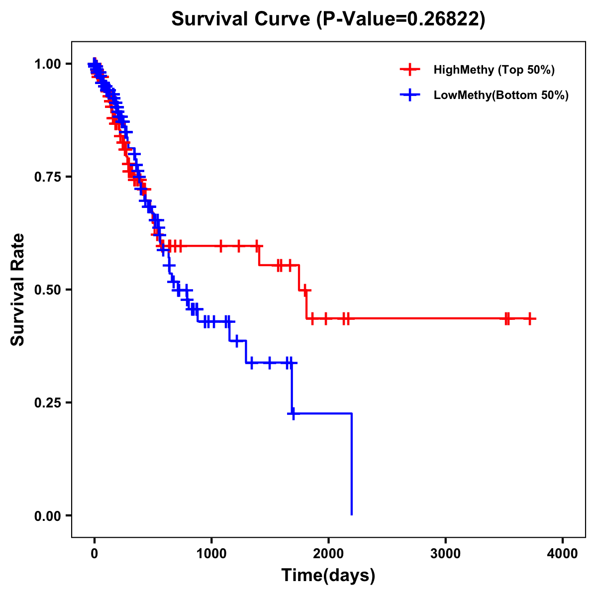 | Survival Curve of Stomach Cancer of Expression | Survival Curve of Stomach Cancer of Methylation | ||