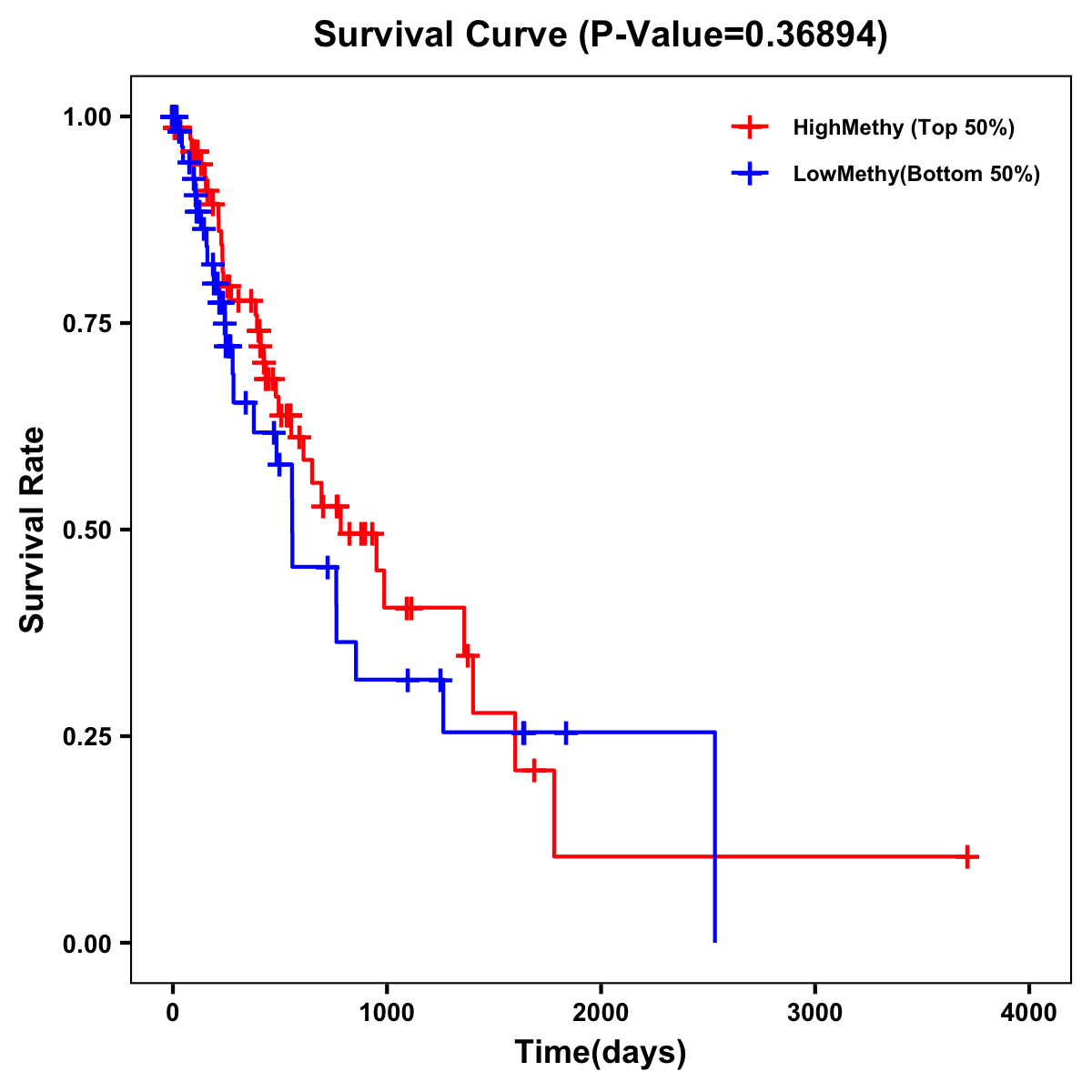 | Survival Curve of Esophagus Cancer of Expression | Survival Curve of Esophagus Cancer of Methylation | ||