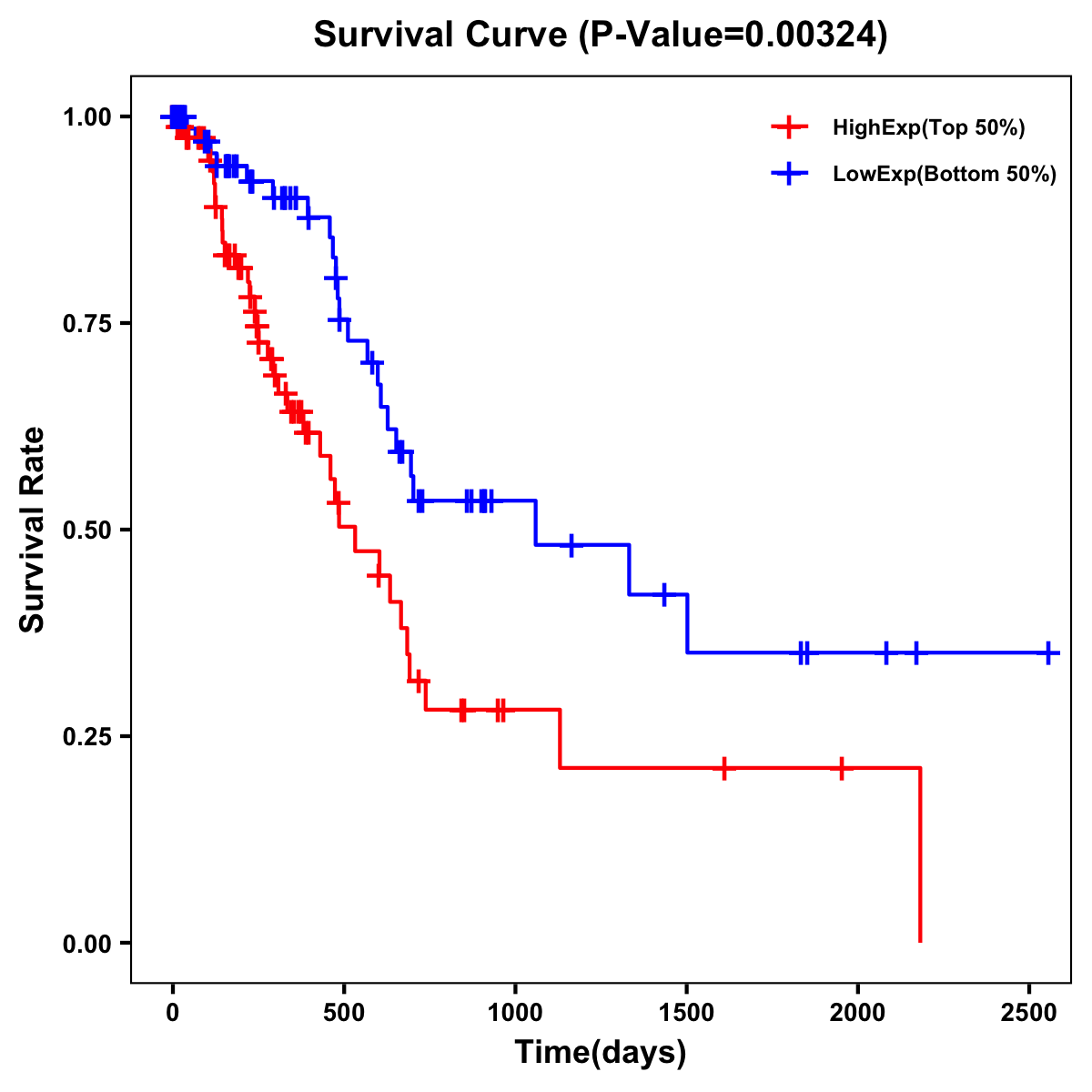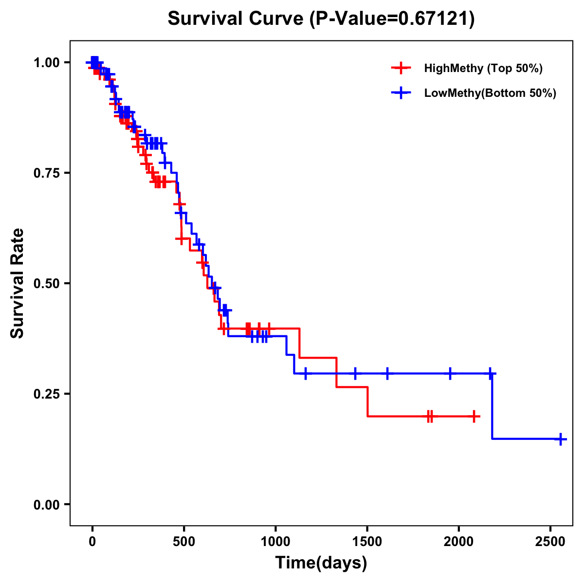 | Survival Curve of Pancreatic Cancer of Expression | Survival Curve of Pancreatic Cancer of Methylation | ||