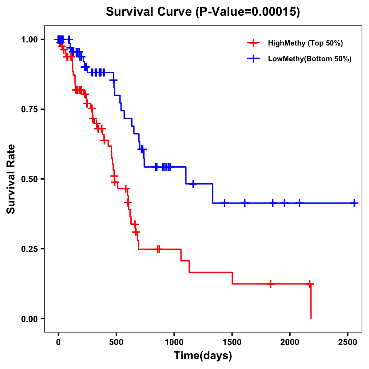 | Survival Curve of Pancreatic Cancer of Expression | Survival Curve of Pancreatic Cancer of Methylation | ||