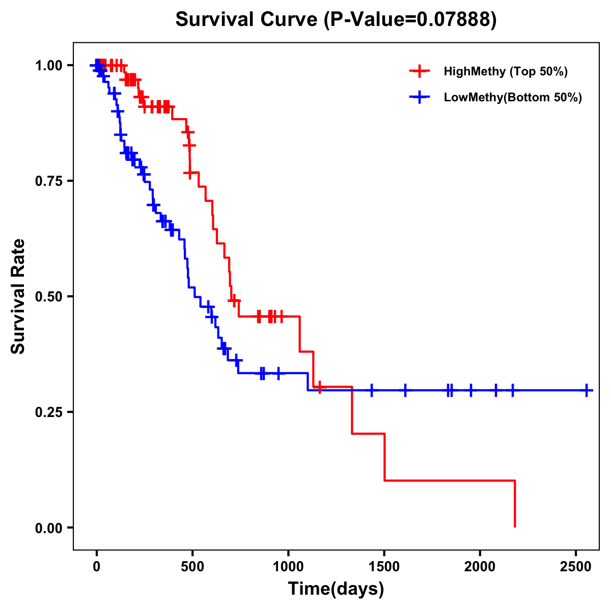 | Survival Curve of Pancreatic Cancer of Expression | Survival Curve of Pancreatic Cancer of Methylation | ||