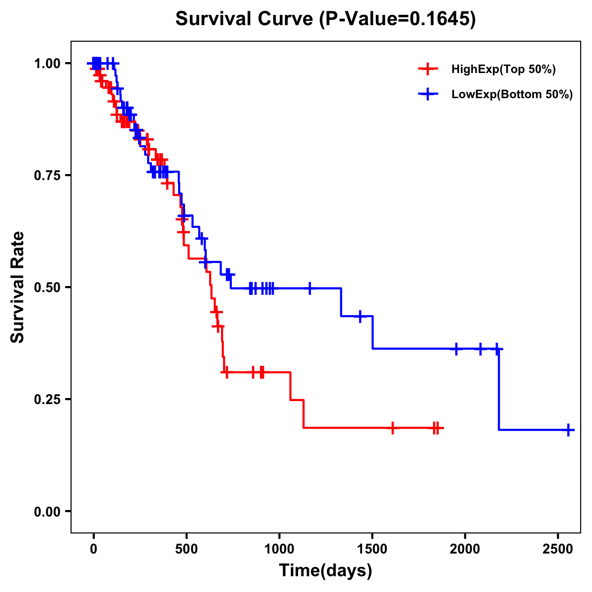 | Survival Curve of Pancreatic Cancer of Expression | Survival Curve of Pancreatic Cancer of Methylation | ||