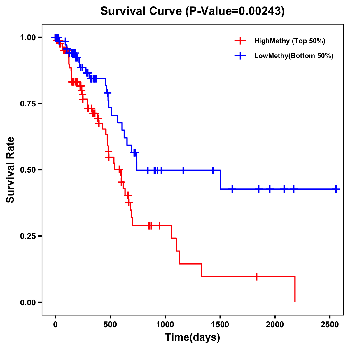 | Survival Curve of Pancreatic Cancer of Expression | Survival Curve of Pancreatic Cancer of Methylation | ||