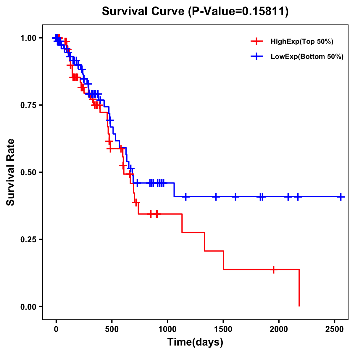 | Survival Curve of Pancreatic Cancer of Expression | Survival Curve of Pancreatic Cancer of Methylation | ||