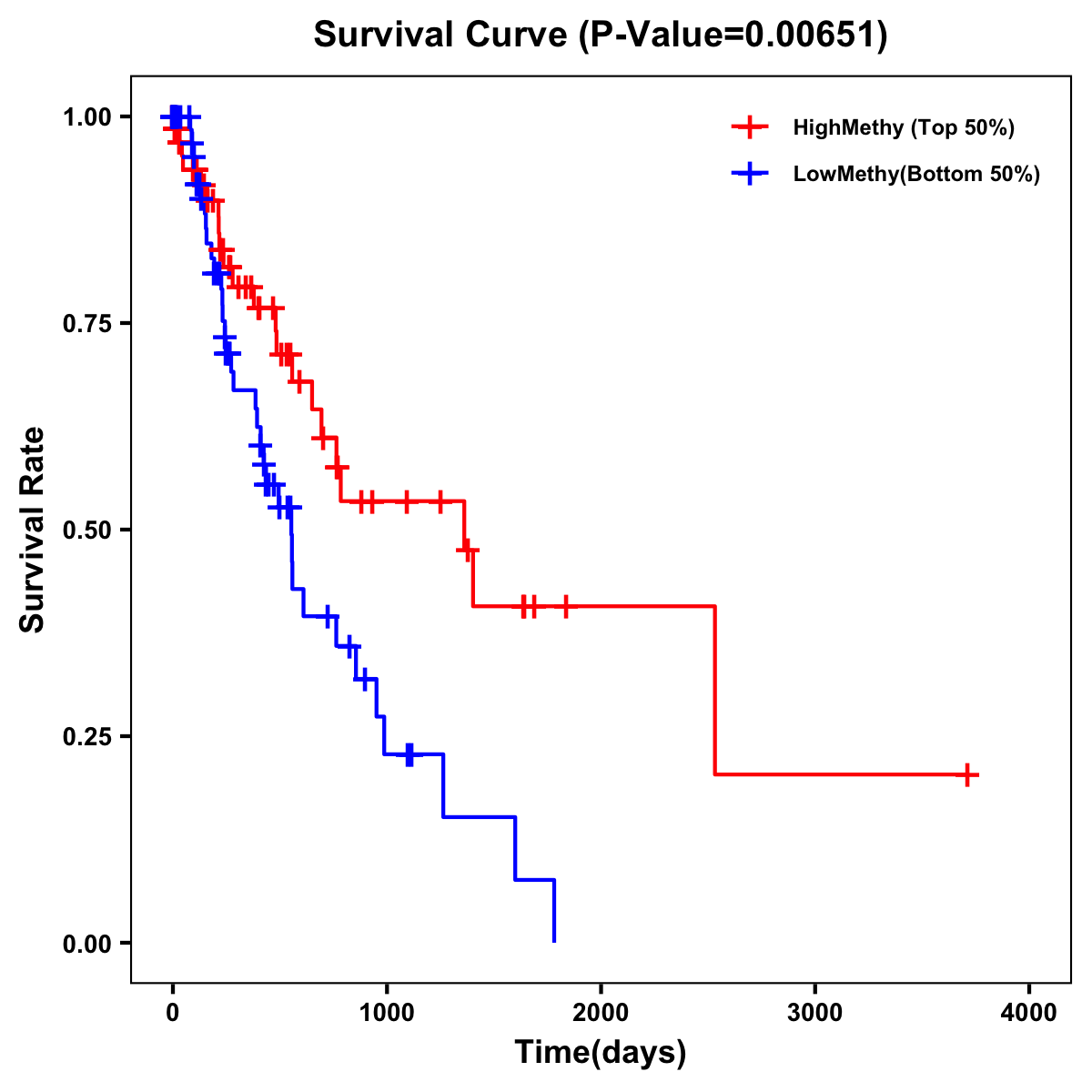| Survival Curve of Esophagus Cancer of Expression | Survival Curve of Esophagus Cancer of Methylation | ||
