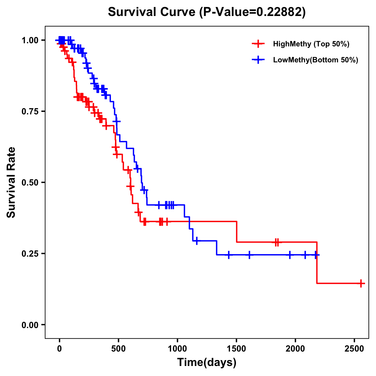 | Survival Curve of Pancreatic Cancer of Expression | Survival Curve of Pancreatic Cancer of Methylation | ||