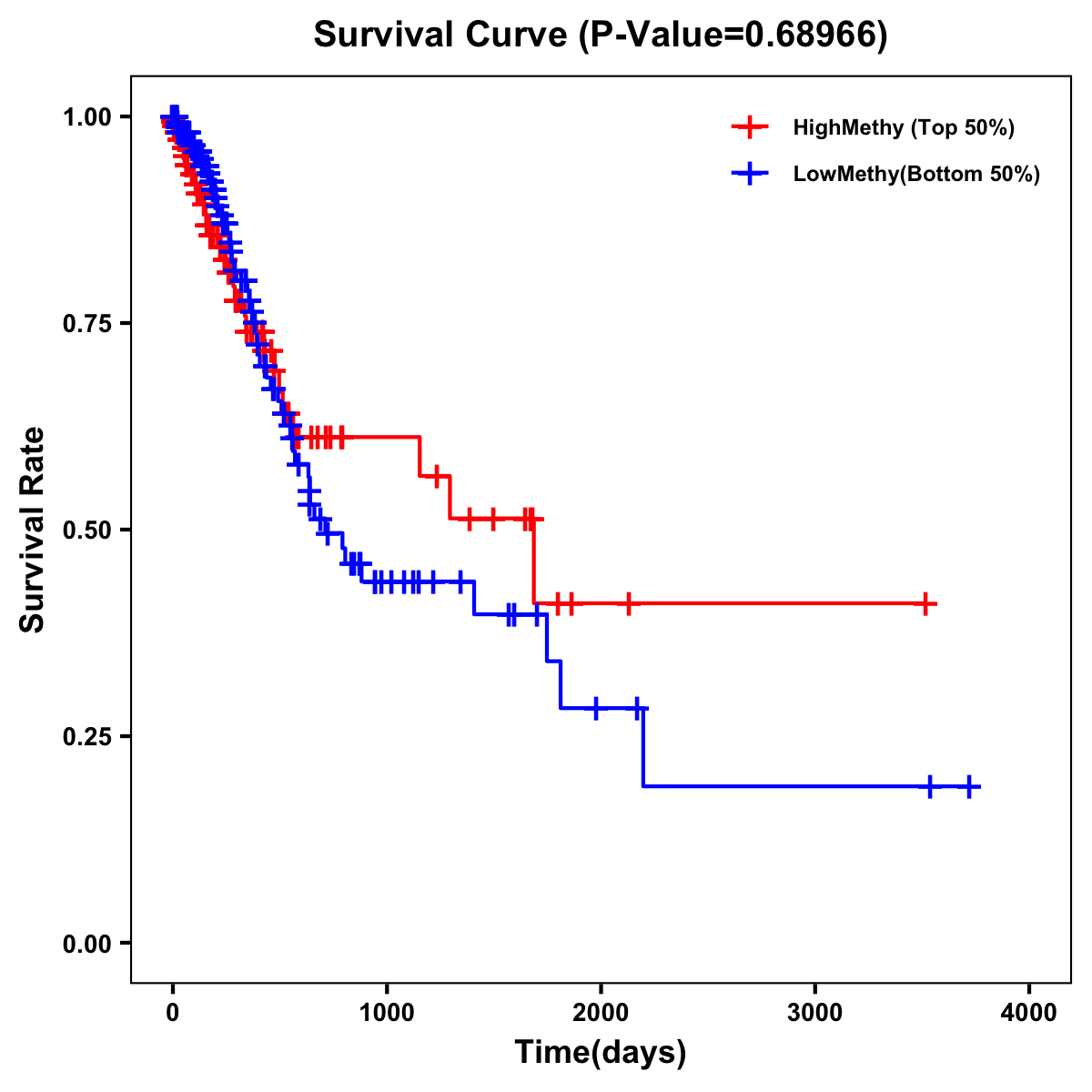 | Survival Curve of Stomach Cancer of Expression | Survival Curve of Stomach Cancer of Methylation | ||