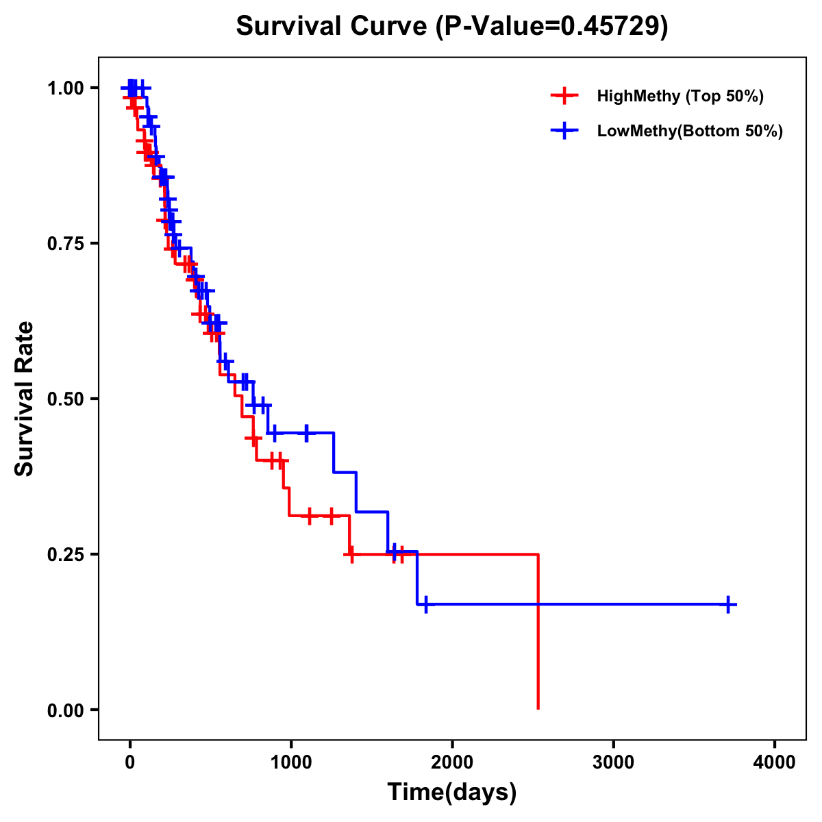 | Survival Curve of Esophagus Cancer of Expression | Survival Curve of Esophagus Cancer of Methylation | ||