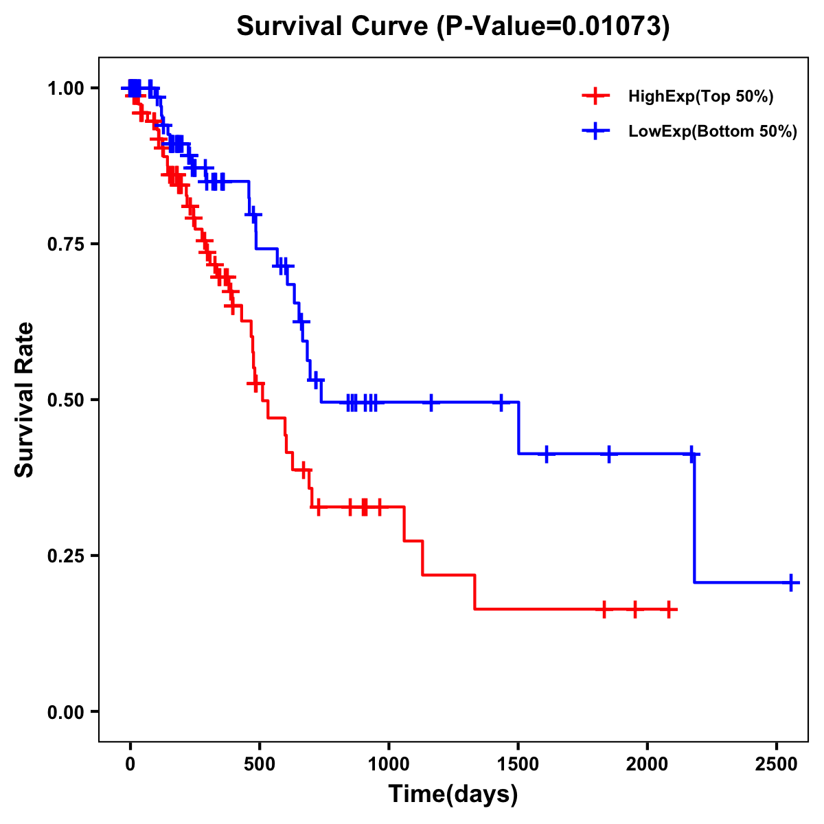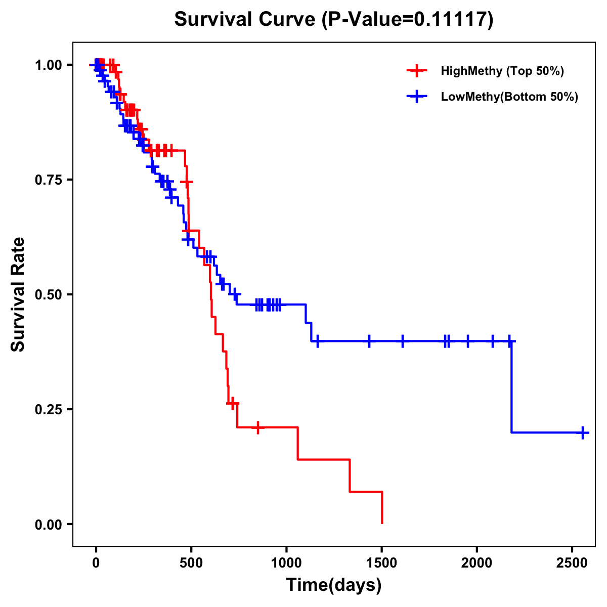 | Survival Curve of Pancreatic Cancer of Expression | Survival Curve of Pancreatic Cancer of Methylation | ||