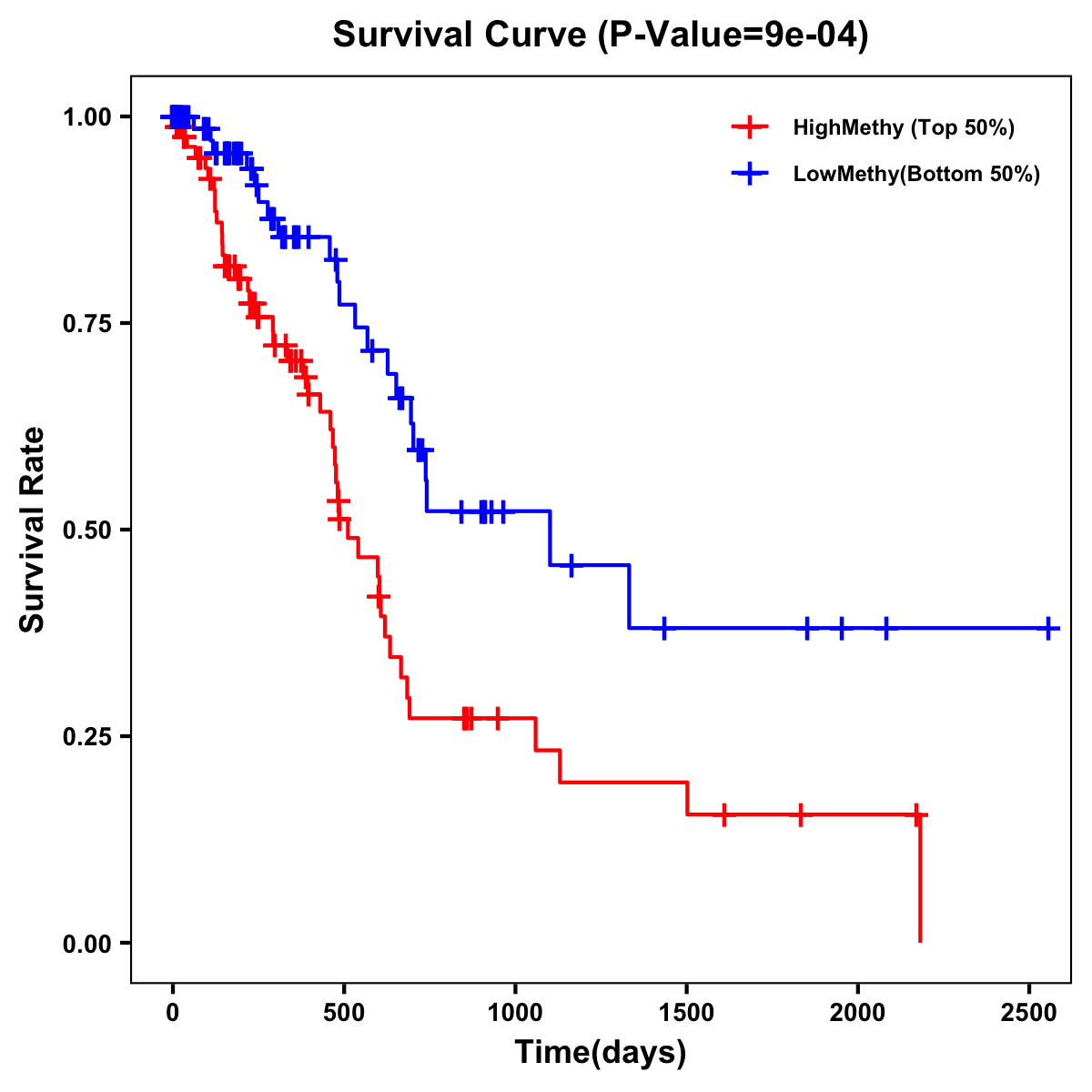 | Survival Curve of Pancreatic Cancer of Expression | Survival Curve of Pancreatic Cancer of Methylation | ||