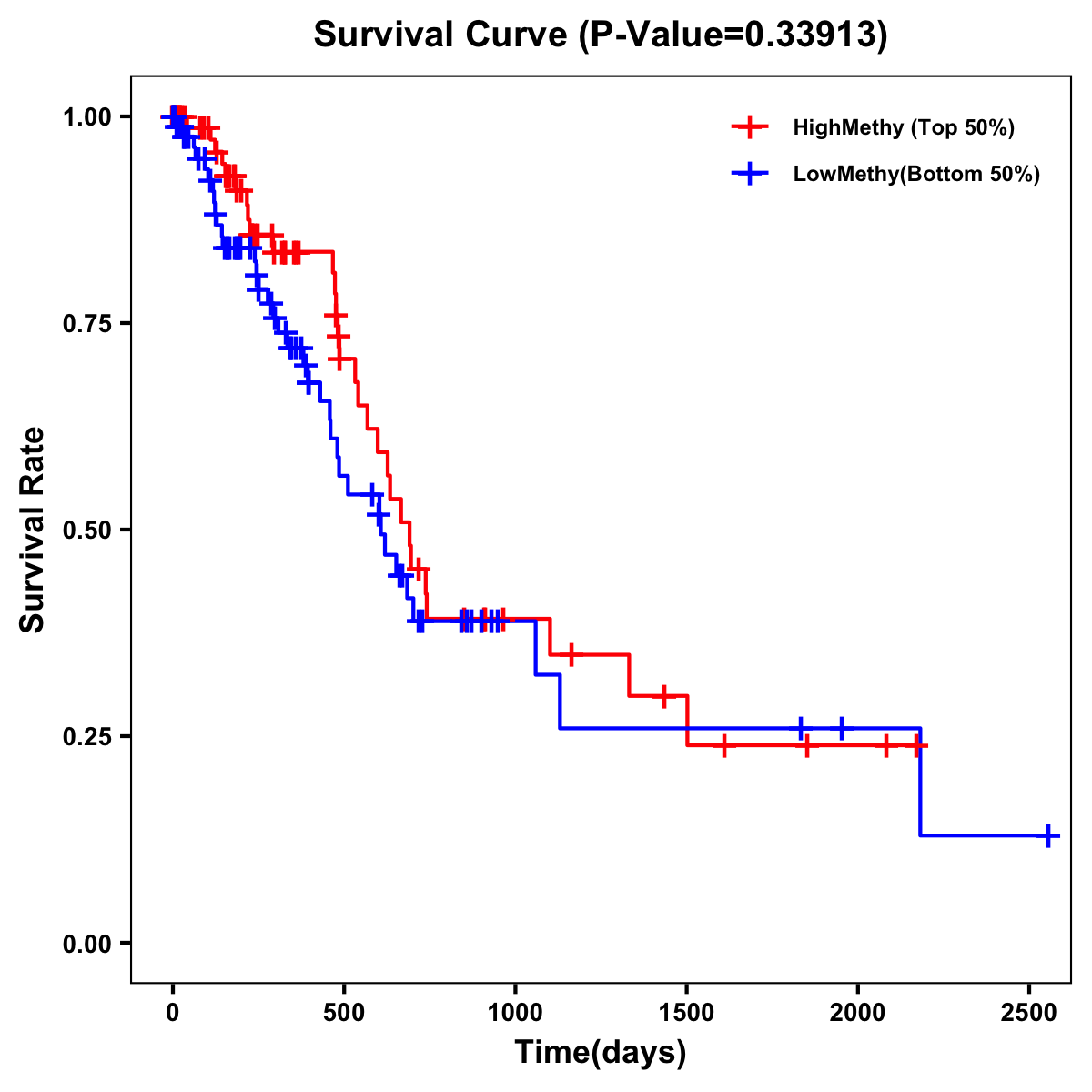 | Survival Curve of Pancreatic Cancer of Expression | Survival Curve of Pancreatic Cancer of Methylation | ||