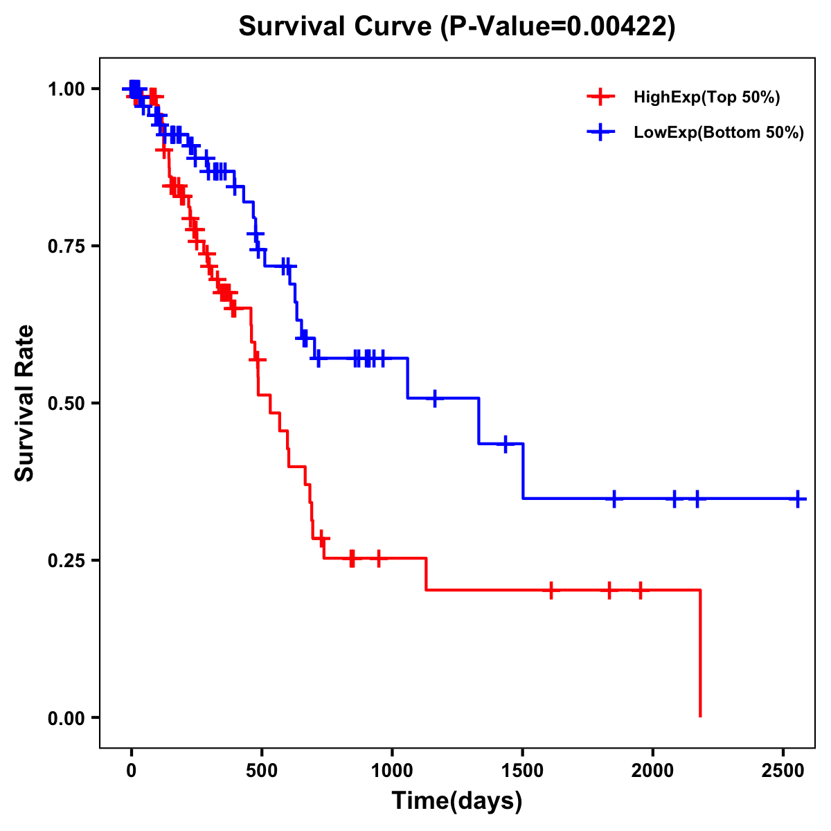 | Survival Curve of Pancreatic Cancer of Expression | Survival Curve of Pancreatic Cancer of Methylation | ||