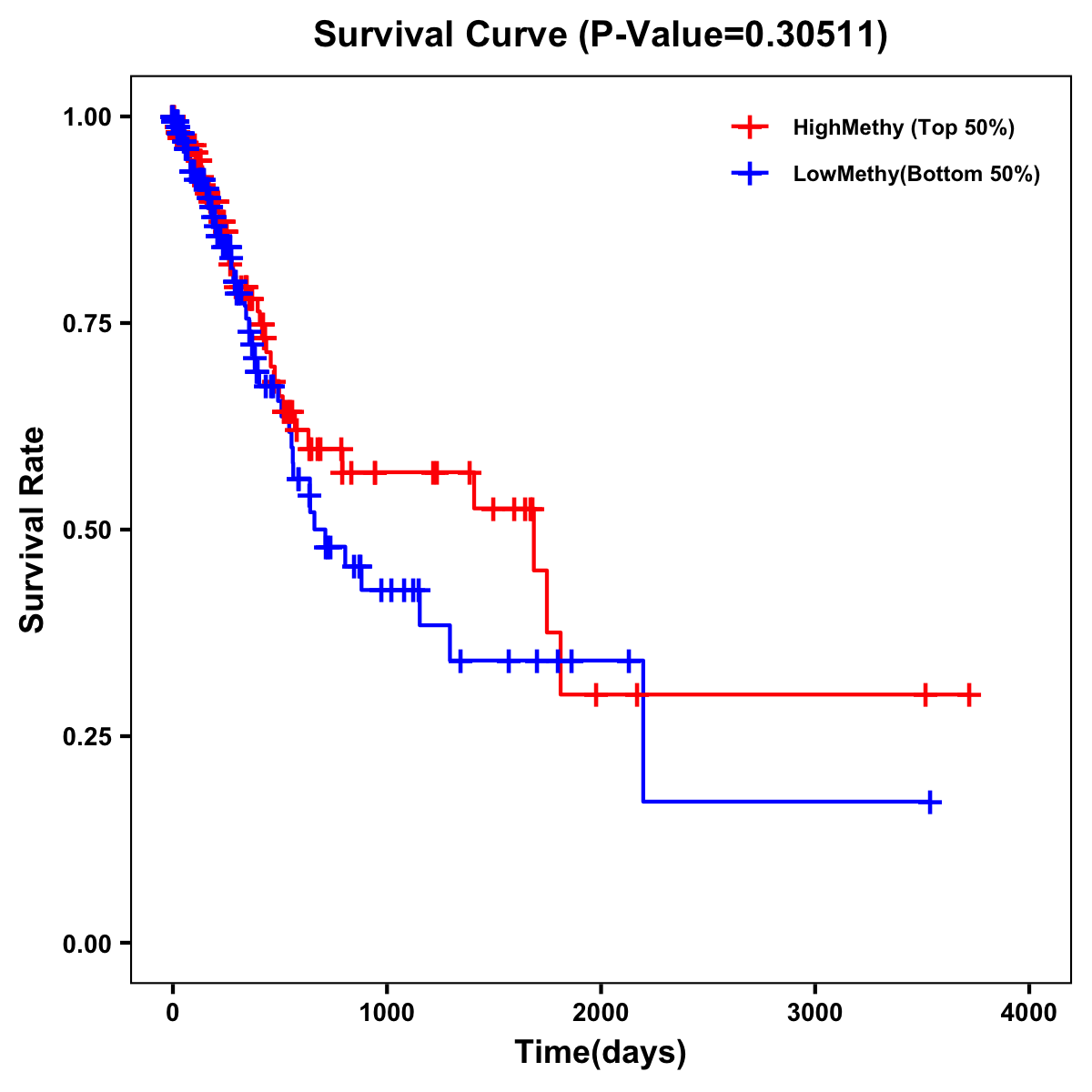 | Survival Curve of Stomach Cancer of Expression | Survival Curve of Stomach Cancer of Methylation | ||