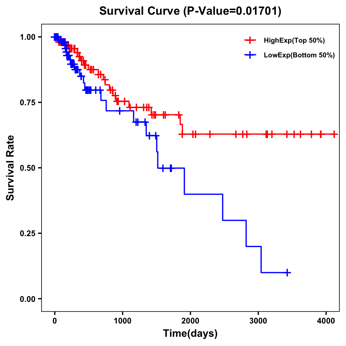 | Survival Curve of Colon Cancer on Expression Level |