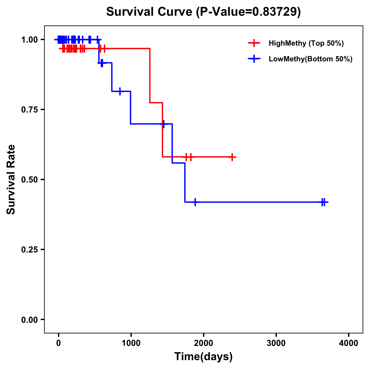 | Survival Curve of Colon Cancer on Methylation Level |