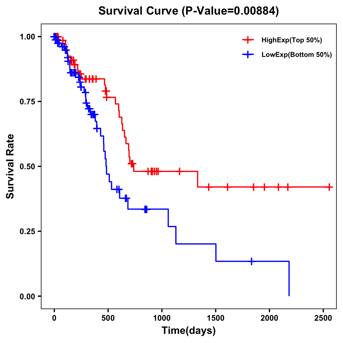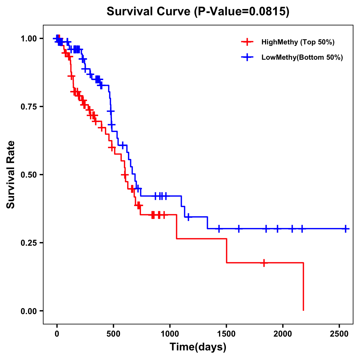 | Survival Curve of Pancreatic Cancer of Expression | Survival Curve of Pancreatic Cancer of Methylation | ||