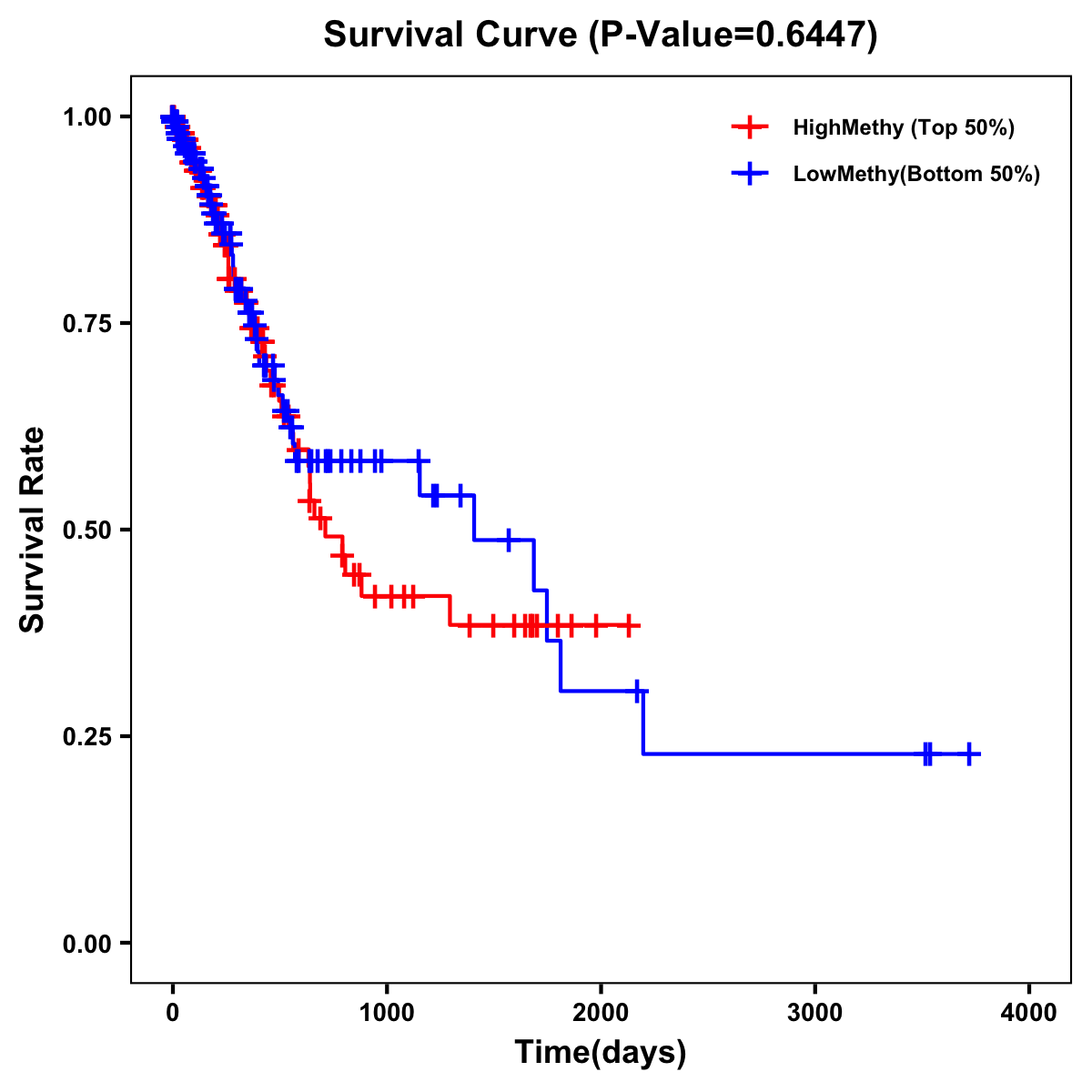 | Survival Curve of Stomach Cancer of Expression | Survival Curve of Stomach Cancer of Methylation | ||