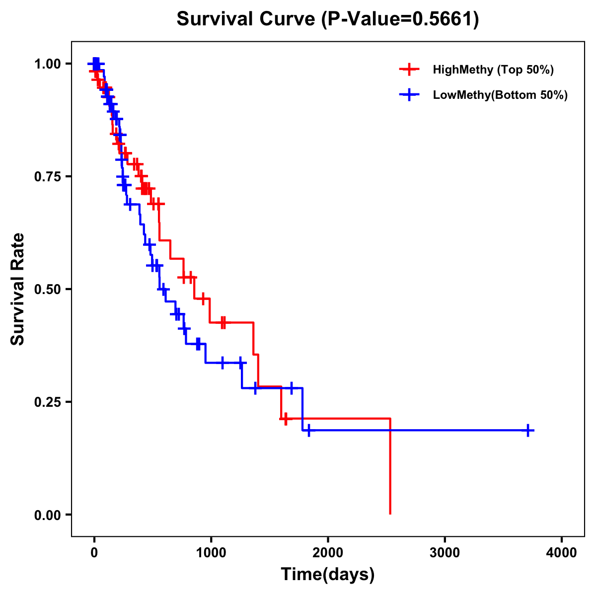 | Survival Curve of Esophagus Cancer of Expression | Survival Curve of Esophagus Cancer of Methylation | ||