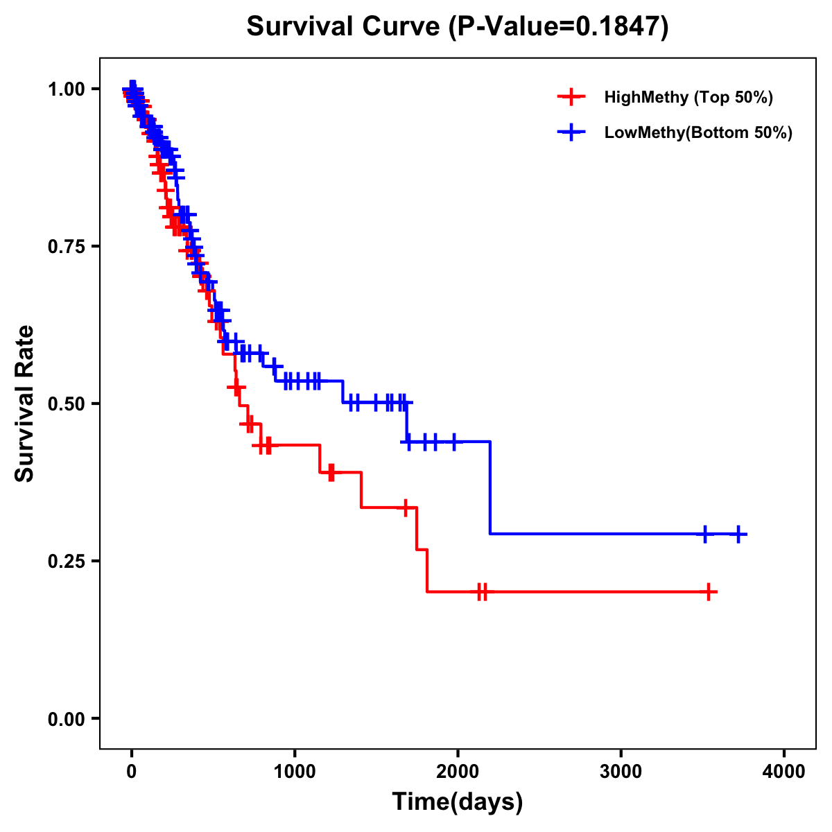 | Survival Curve of Stomach Cancer of Expression | Survival Curve of Stomach Cancer of Methylation | ||