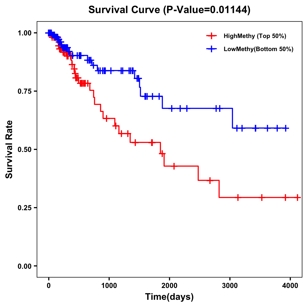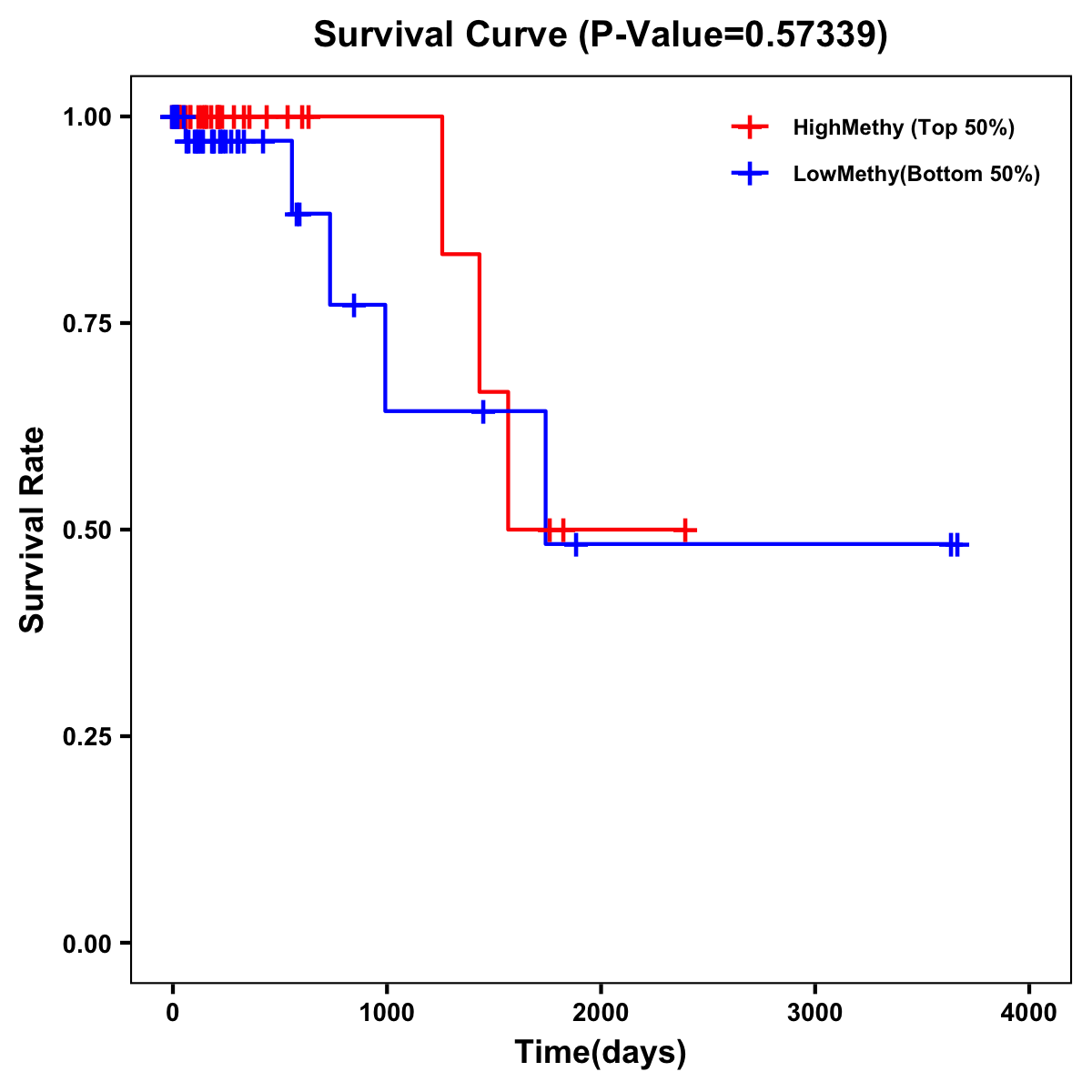 | Survival Curve of Colon Cancer on Methylation Level |