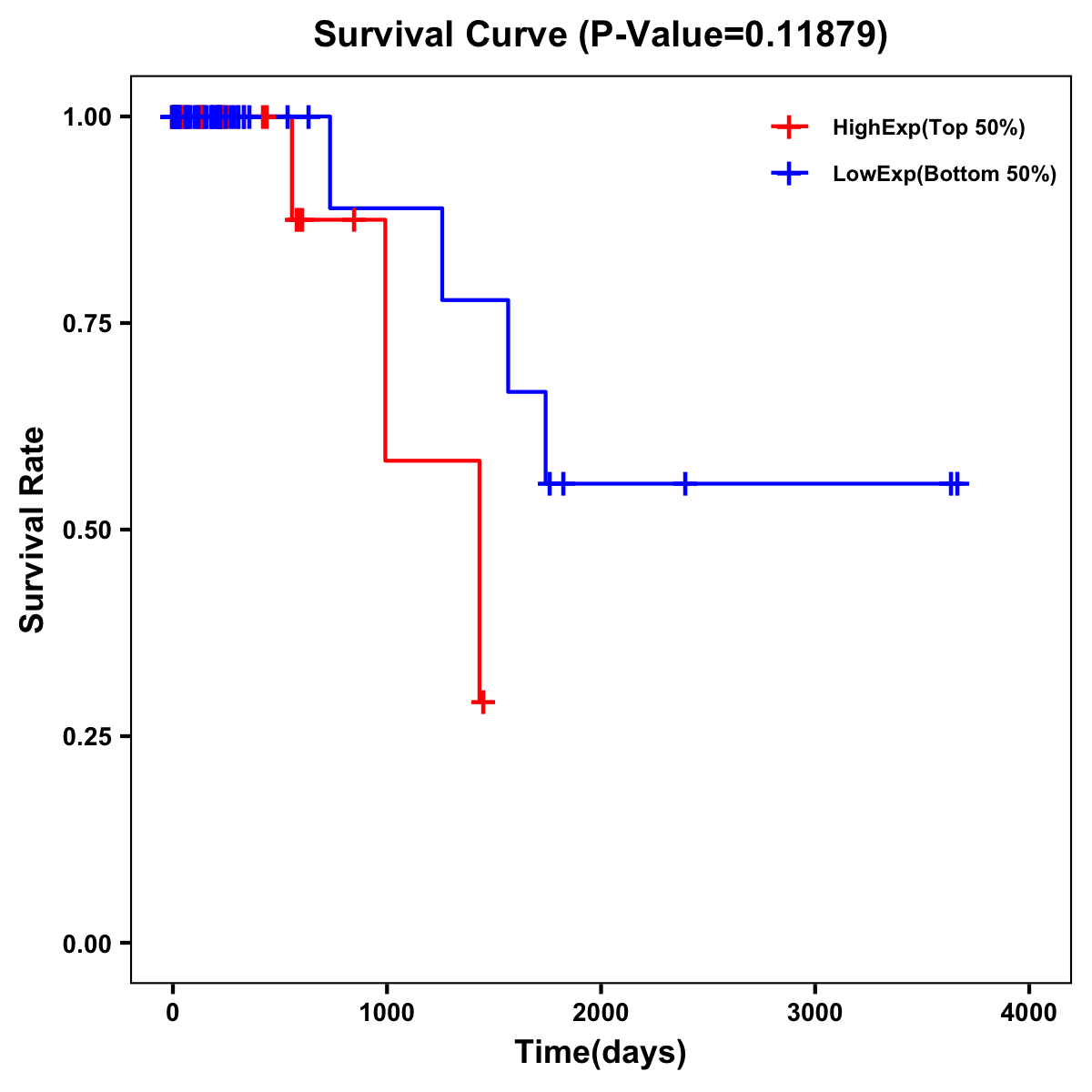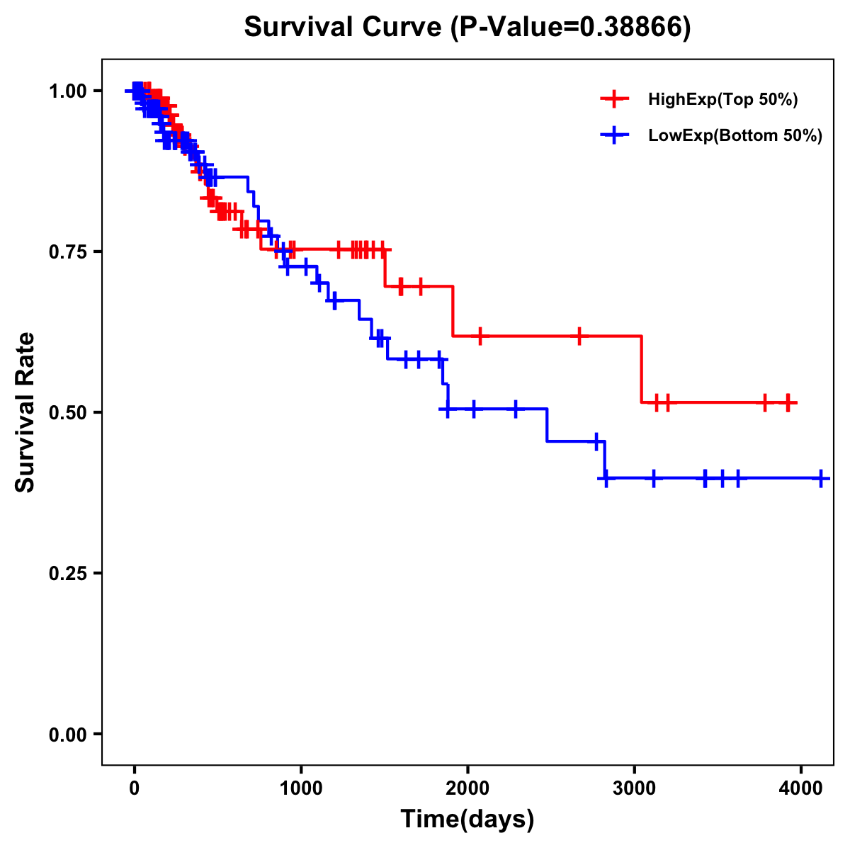 | Survival Curve of Colon Cancer on Expression Level |