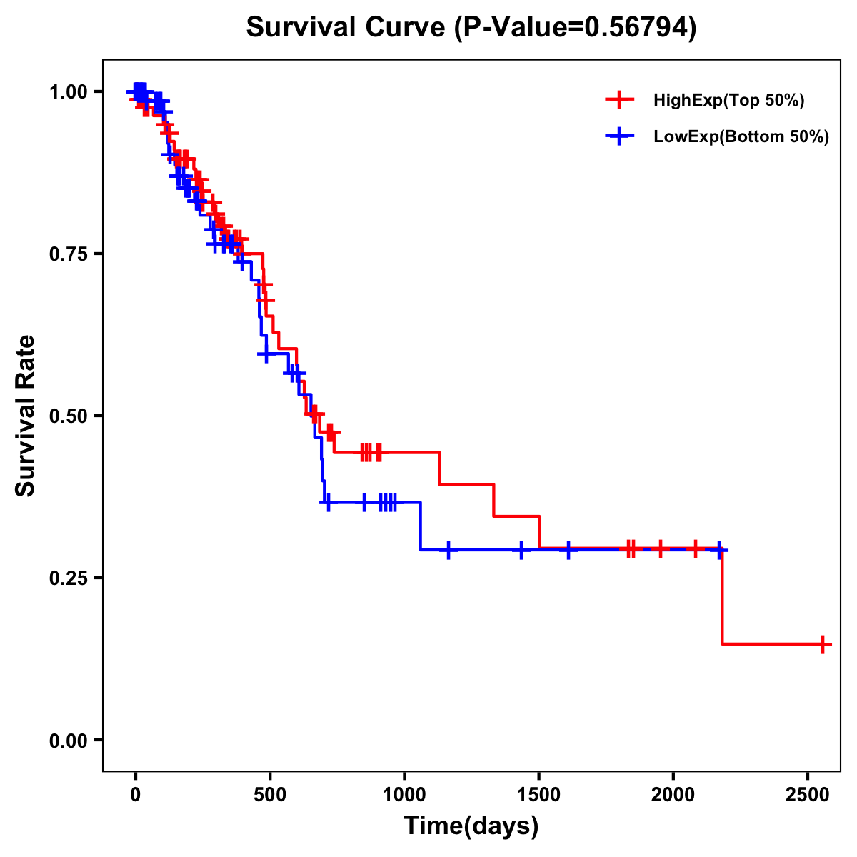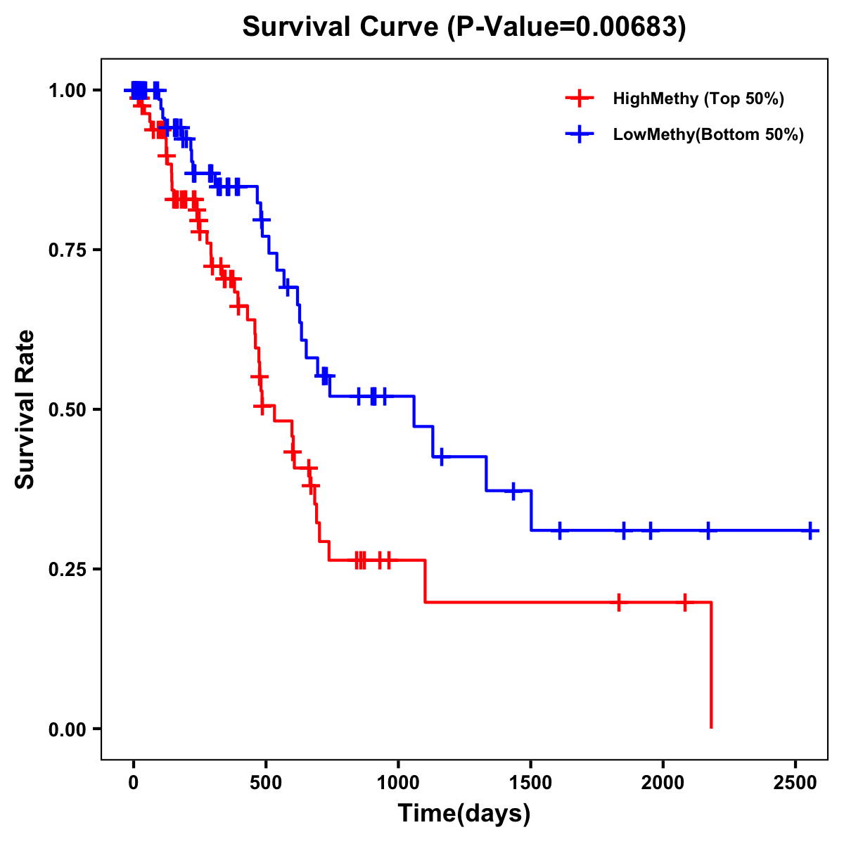 | Survival Curve of Pancreatic Cancer of Expression | Survival Curve of Pancreatic Cancer of Methylation | ||