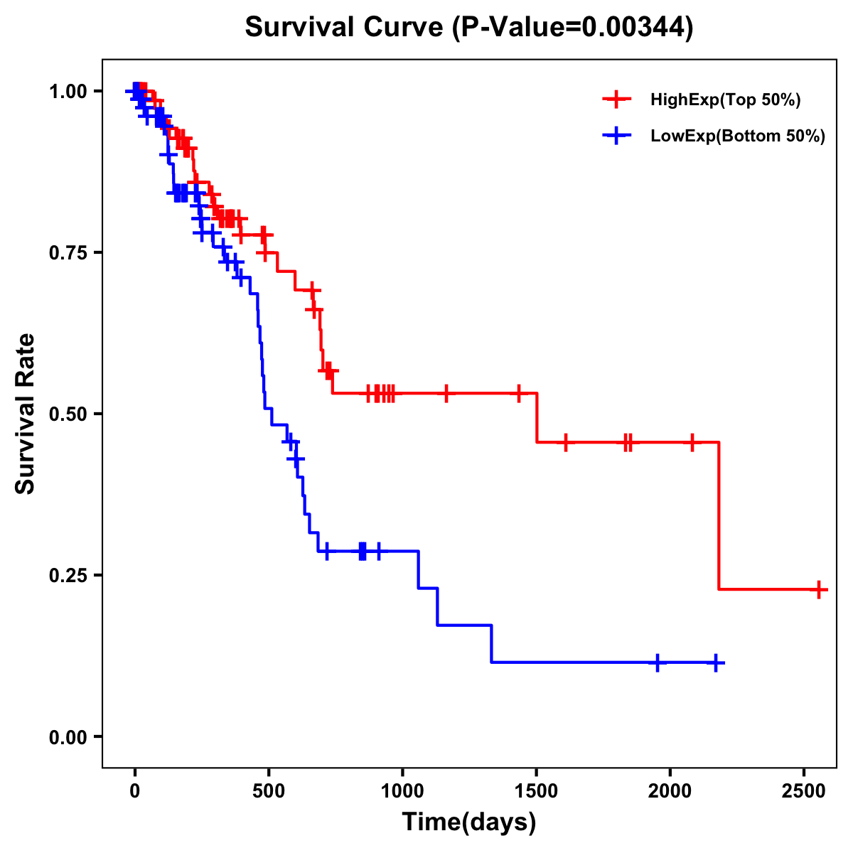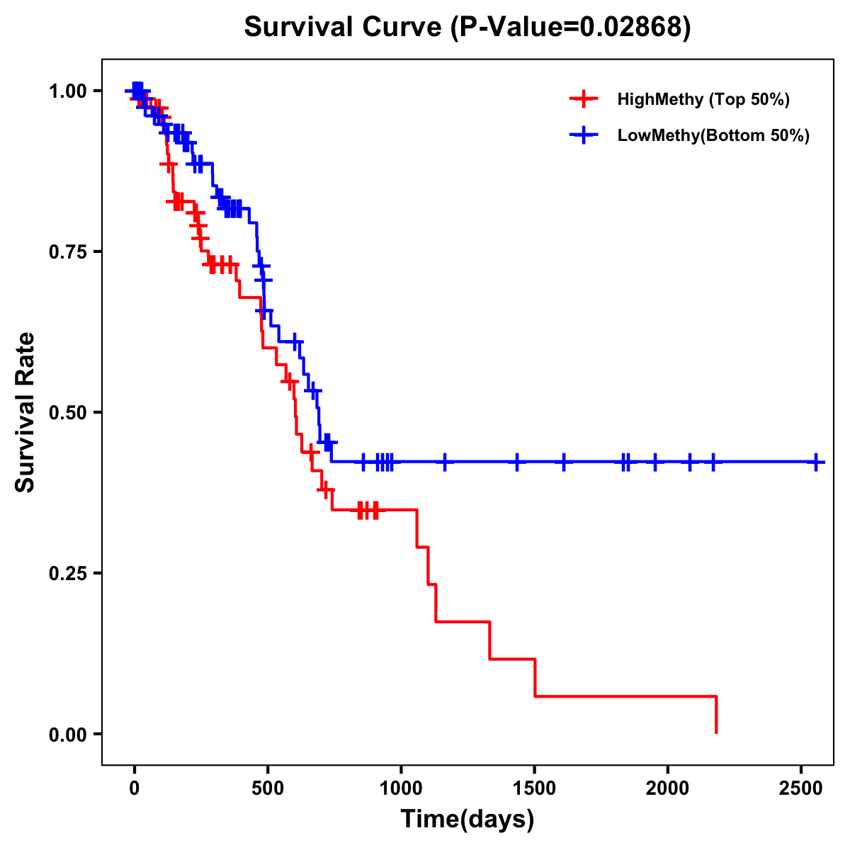 | Survival Curve of Pancreatic Cancer of Expression | Survival Curve of Pancreatic Cancer of Methylation | ||