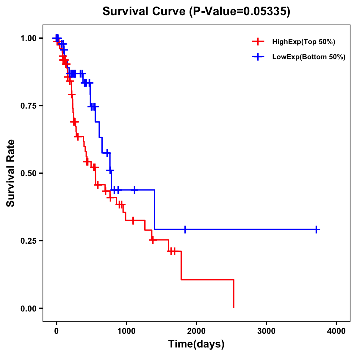 | Survival Curve of Esophagus Cancer of Expression | Survival Curve of Esophagus Cancer of Methylation | ||