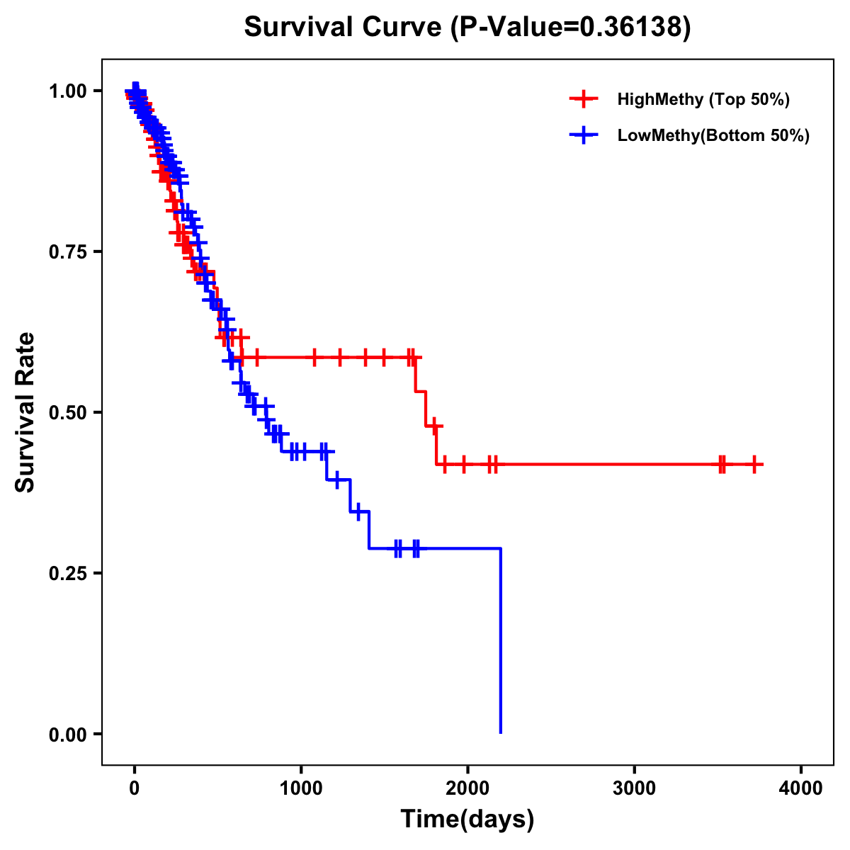 | Survival Curve of Stomach Cancer of Expression | Survival Curve of Stomach Cancer of Methylation | ||