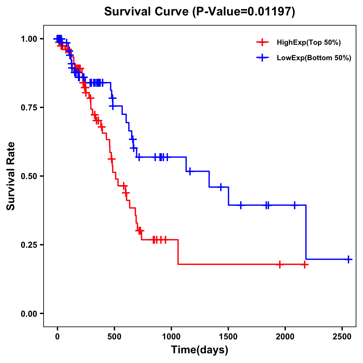 | Survival Curve of Pancreatic Cancer of Expression | Survival Curve of Pancreatic Cancer of Methylation | ||