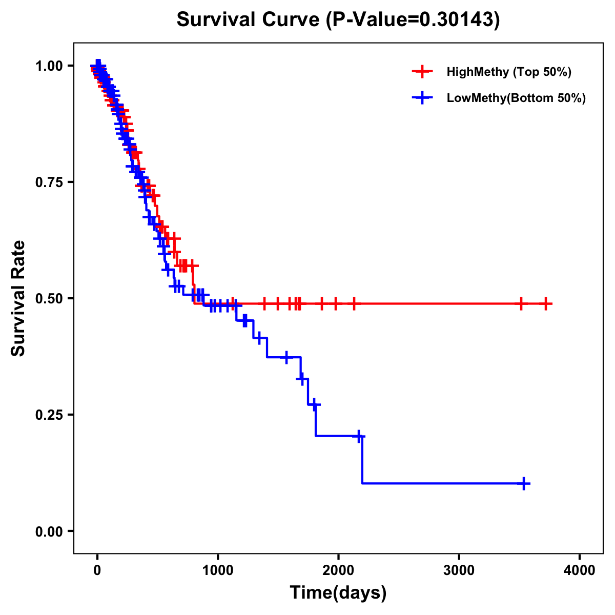 | Survival Curve of Stomach Cancer of Expression | Survival Curve of Stomach Cancer of Methylation | ||