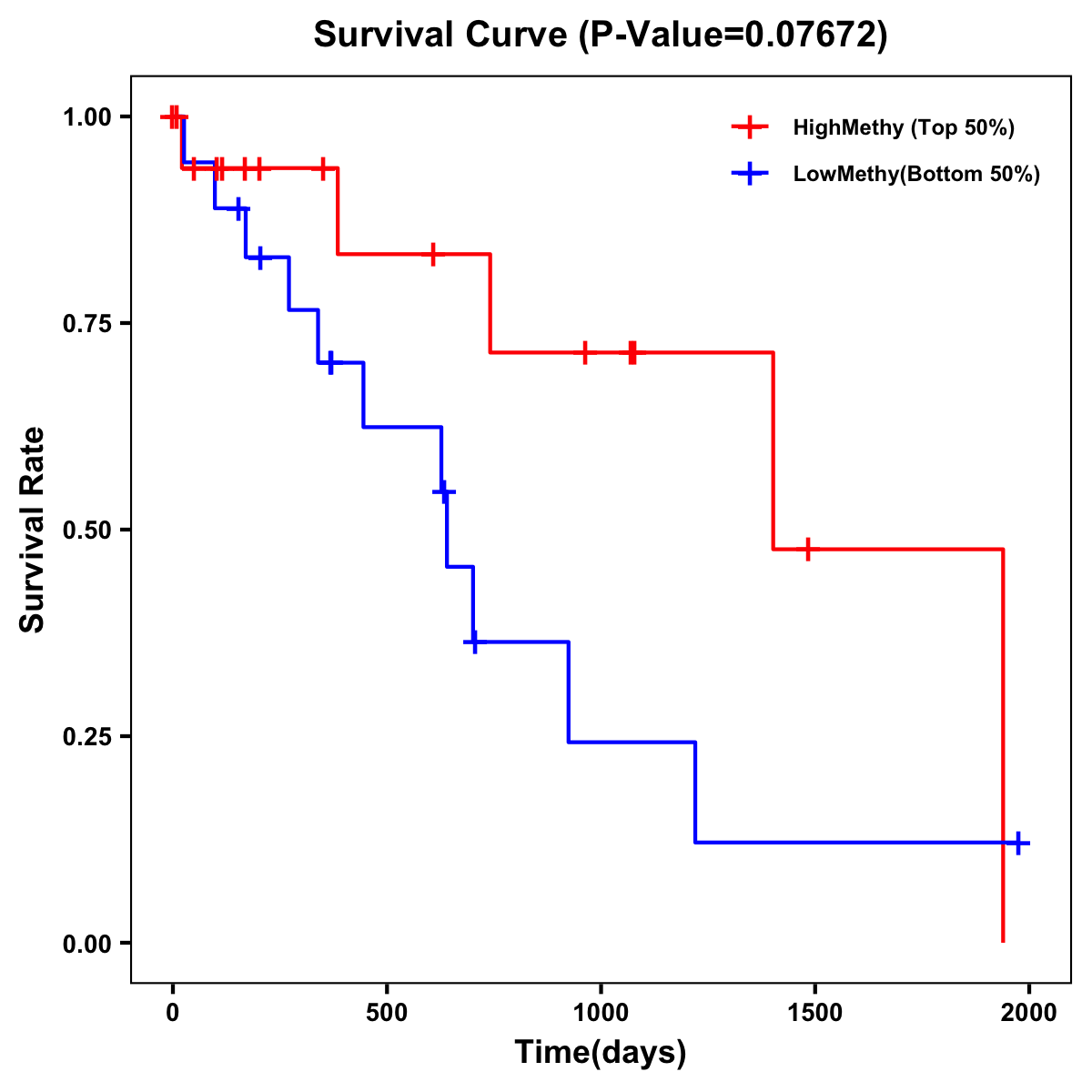 | Survival Curve of Biliary tract Cancer of Expression | Survival Curve of Biliary tract Cancer of Methylation | ||
