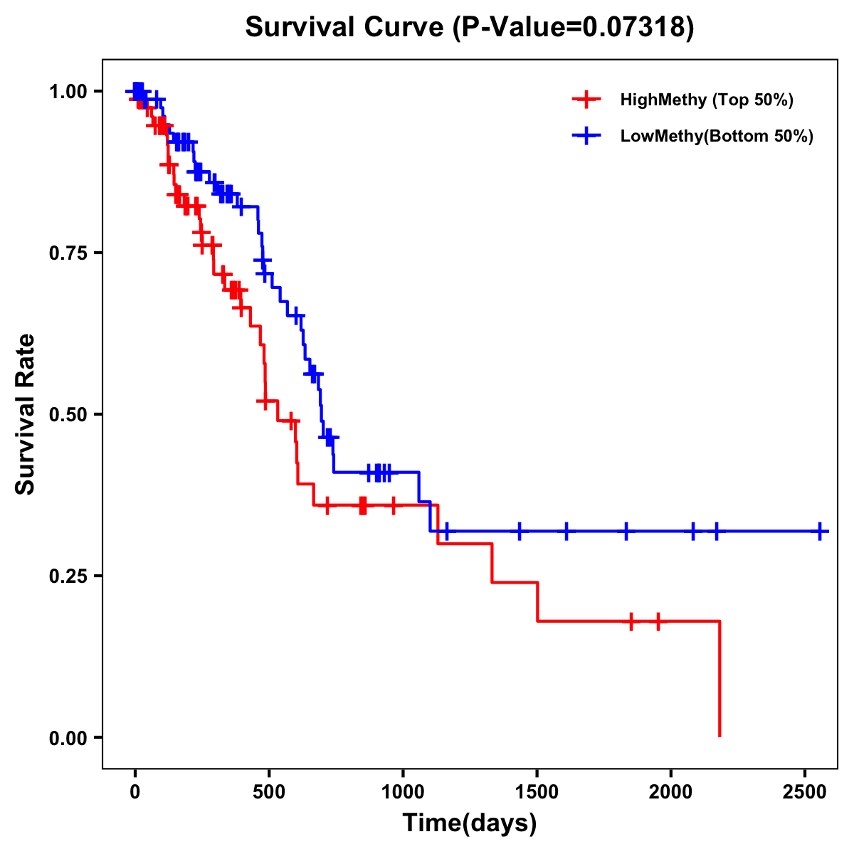 | Survival Curve of Pancreatic Cancer of Expression | Survival Curve of Pancreatic Cancer of Methylation | ||