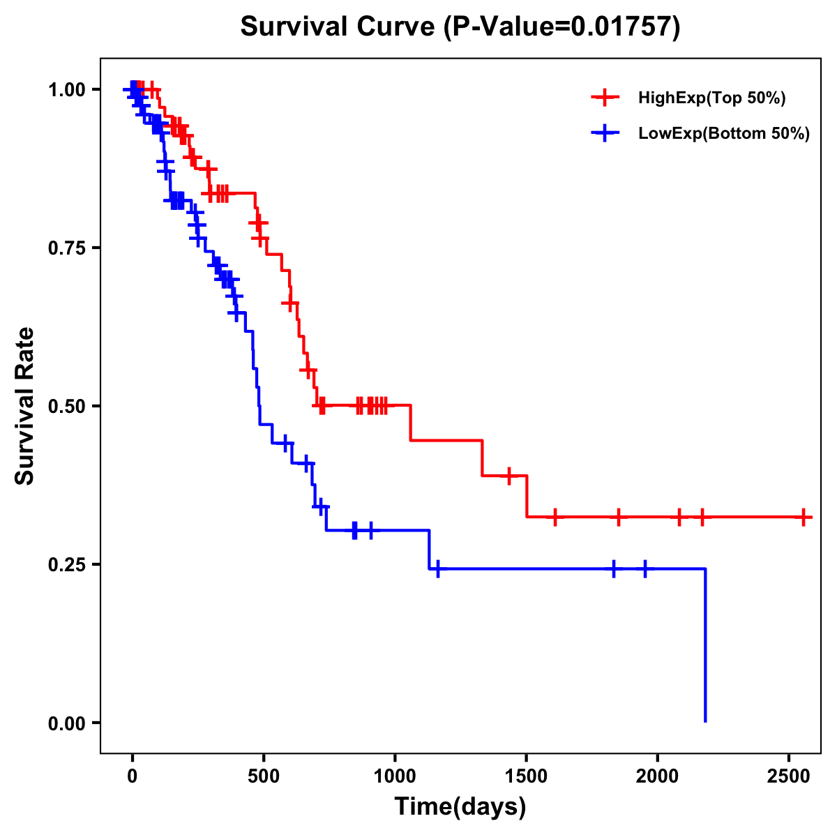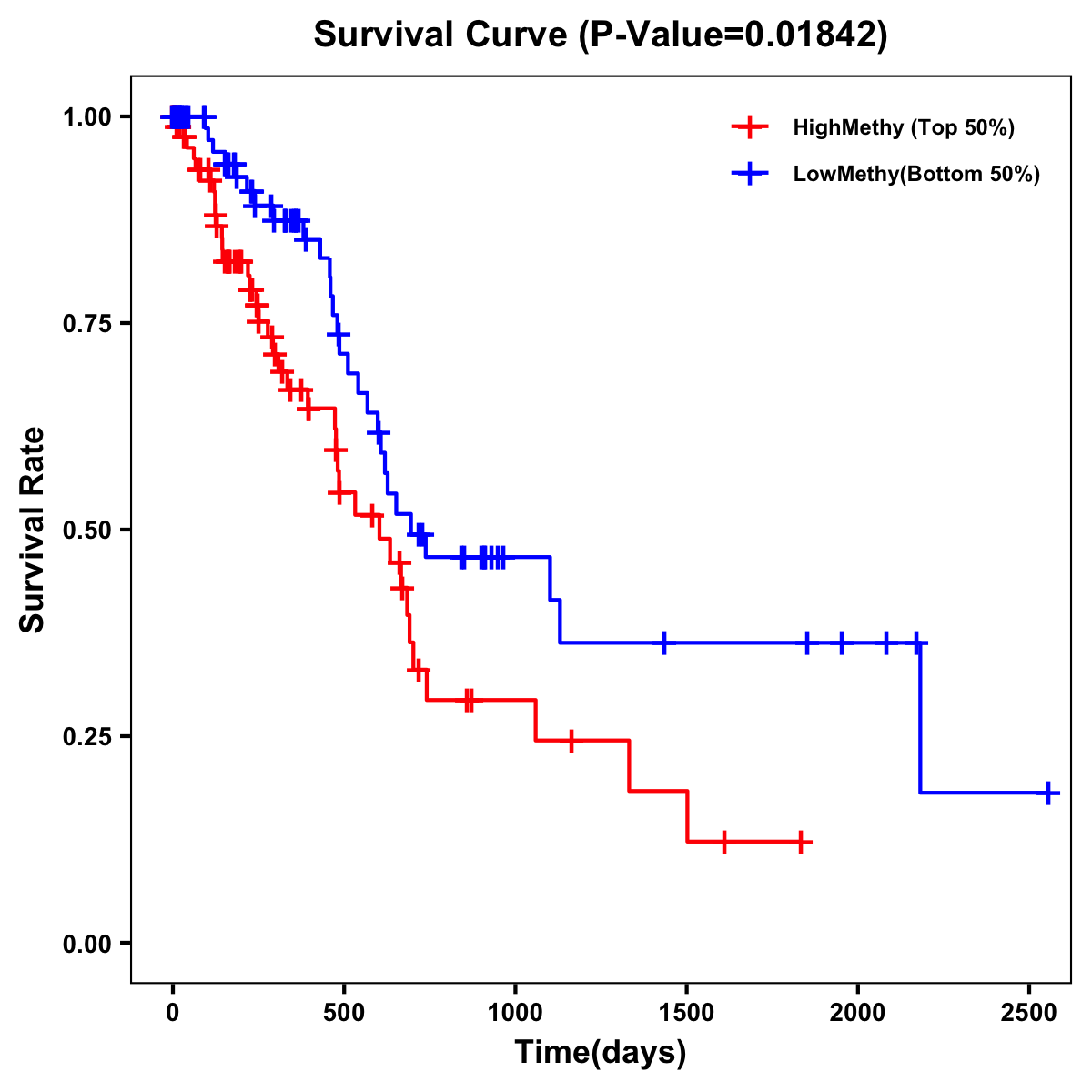 | Survival Curve of Pancreatic Cancer of Expression | Survival Curve of Pancreatic Cancer of Methylation | ||