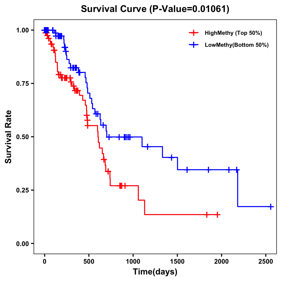 | Survival Curve of Pancreatic Cancer of Expression | Survival Curve of Pancreatic Cancer of Methylation | ||