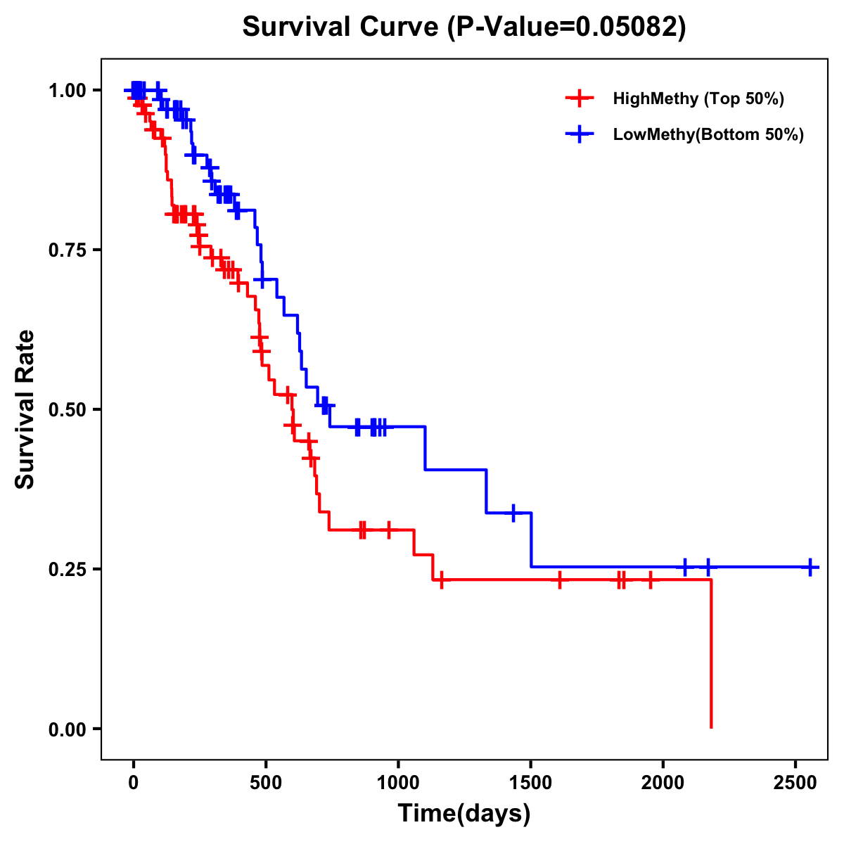 | Survival Curve of Pancreatic Cancer of Expression | Survival Curve of Pancreatic Cancer of Methylation | ||