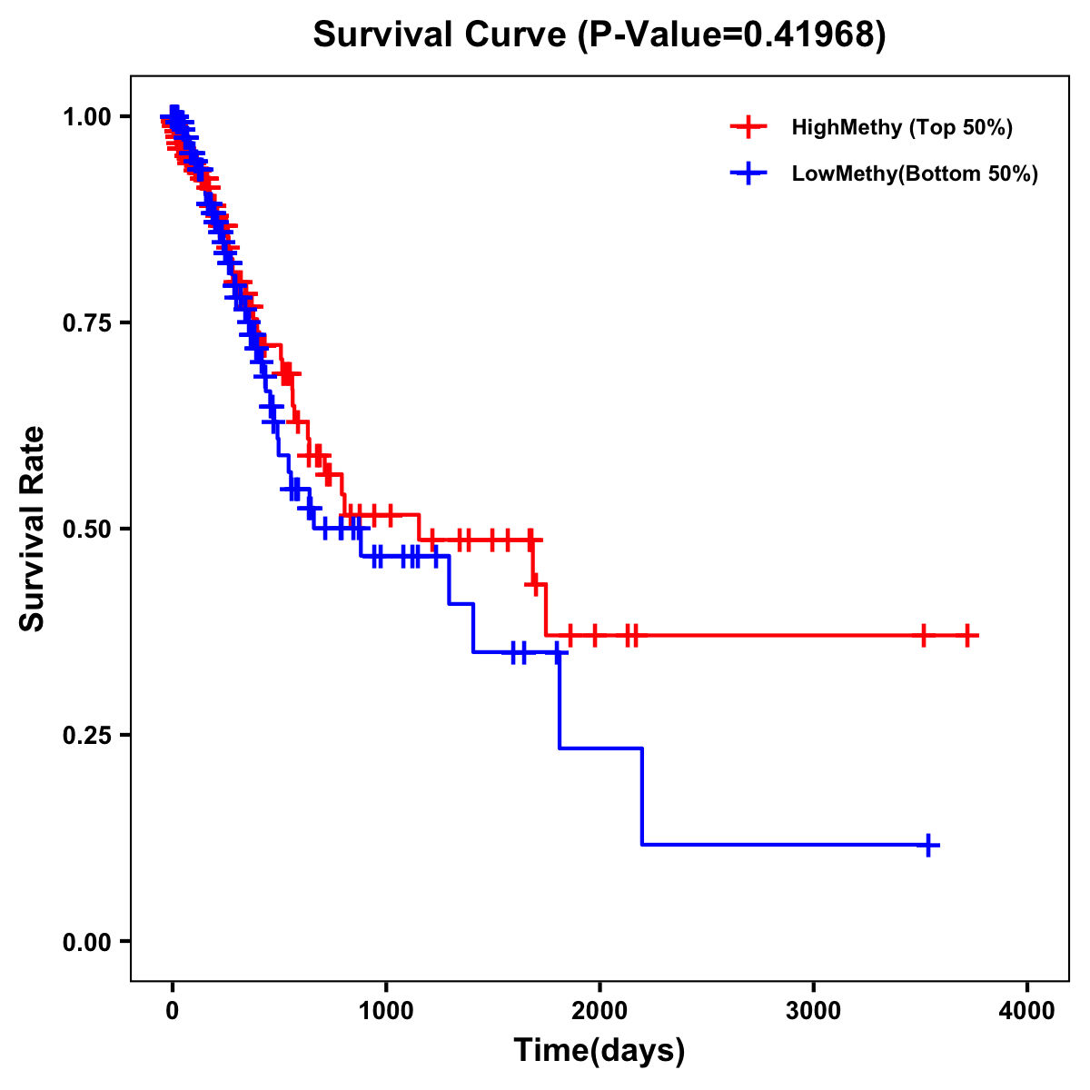 | Survival Curve of Stomach Cancer of Expression | Survival Curve of Stomach Cancer of Methylation | ||