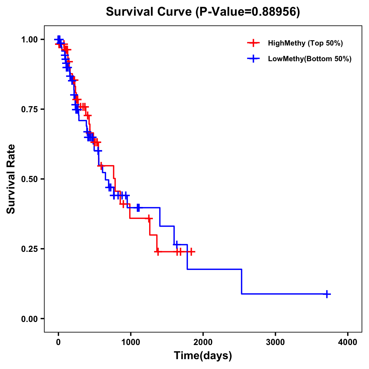 | Survival Curve of Esophagus Cancer of Expression | Survival Curve of Esophagus Cancer of Methylation | ||