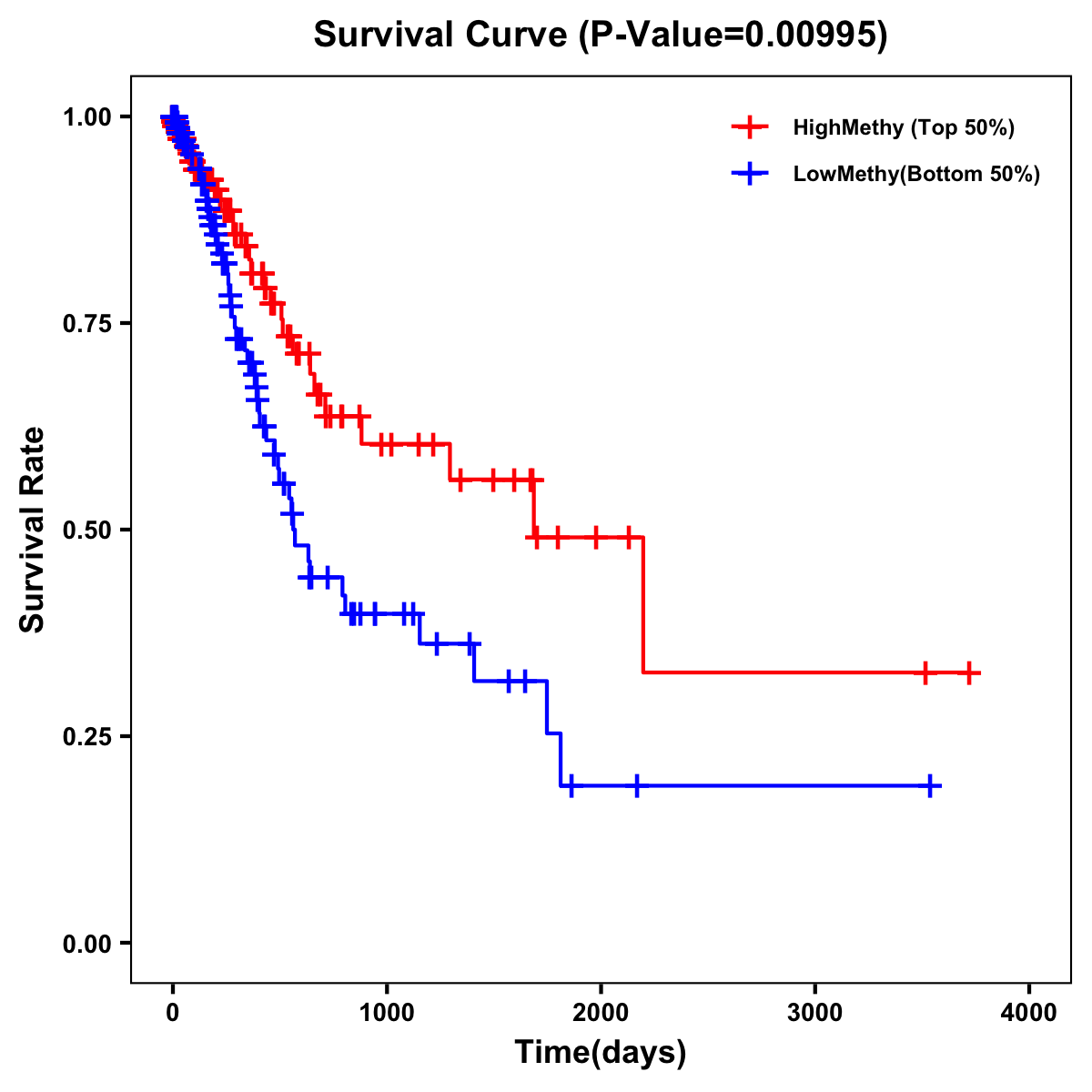 | Survival Curve of Stomach Cancer of Expression | Survival Curve of Stomach Cancer of Methylation | ||