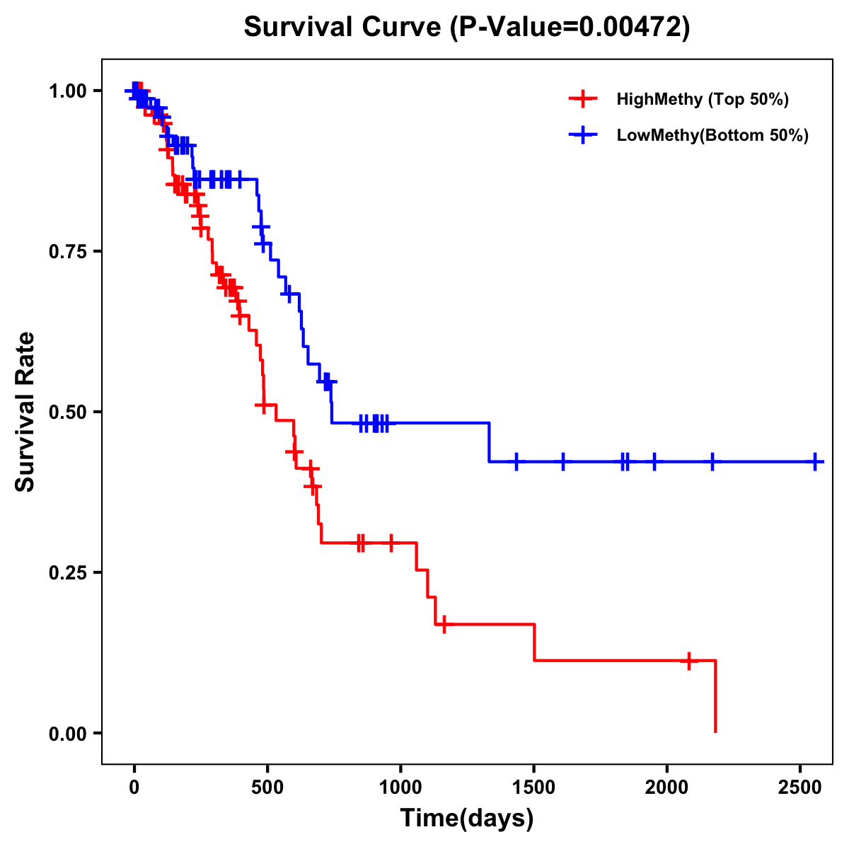| Survival Curve of Pancreatic Cancer of Expression | Survival Curve of Pancreatic Cancer of Methylation | ||