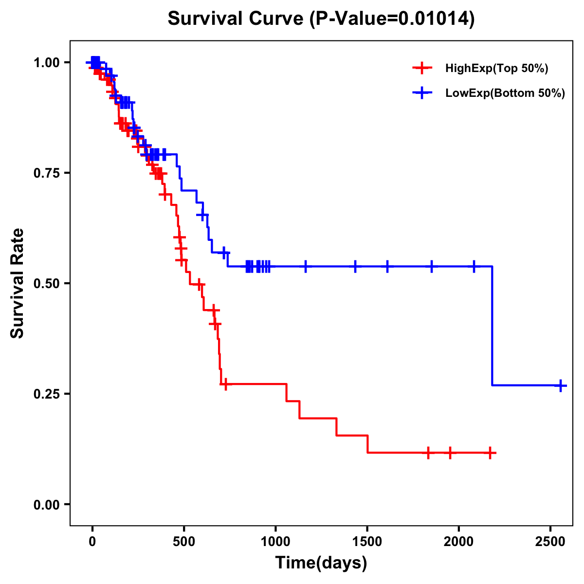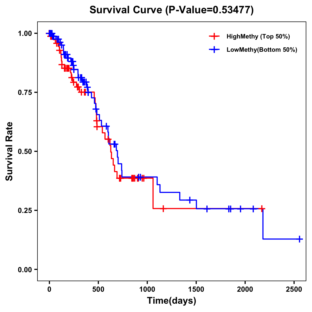 | Survival Curve of Pancreatic Cancer of Expression | Survival Curve of Pancreatic Cancer of Methylation | ||