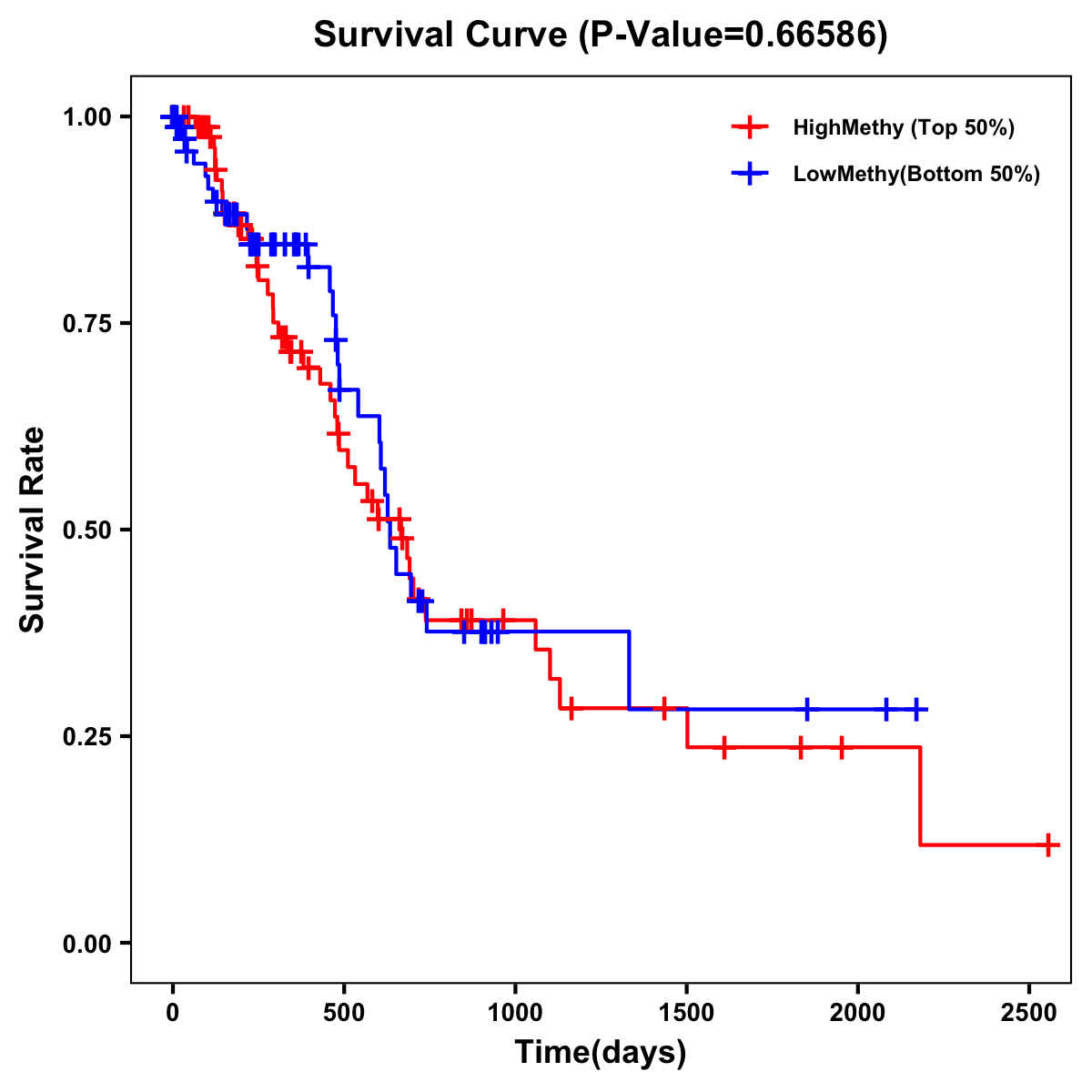 | Survival Curve of Pancreatic Cancer of Expression | Survival Curve of Pancreatic Cancer of Methylation | ||