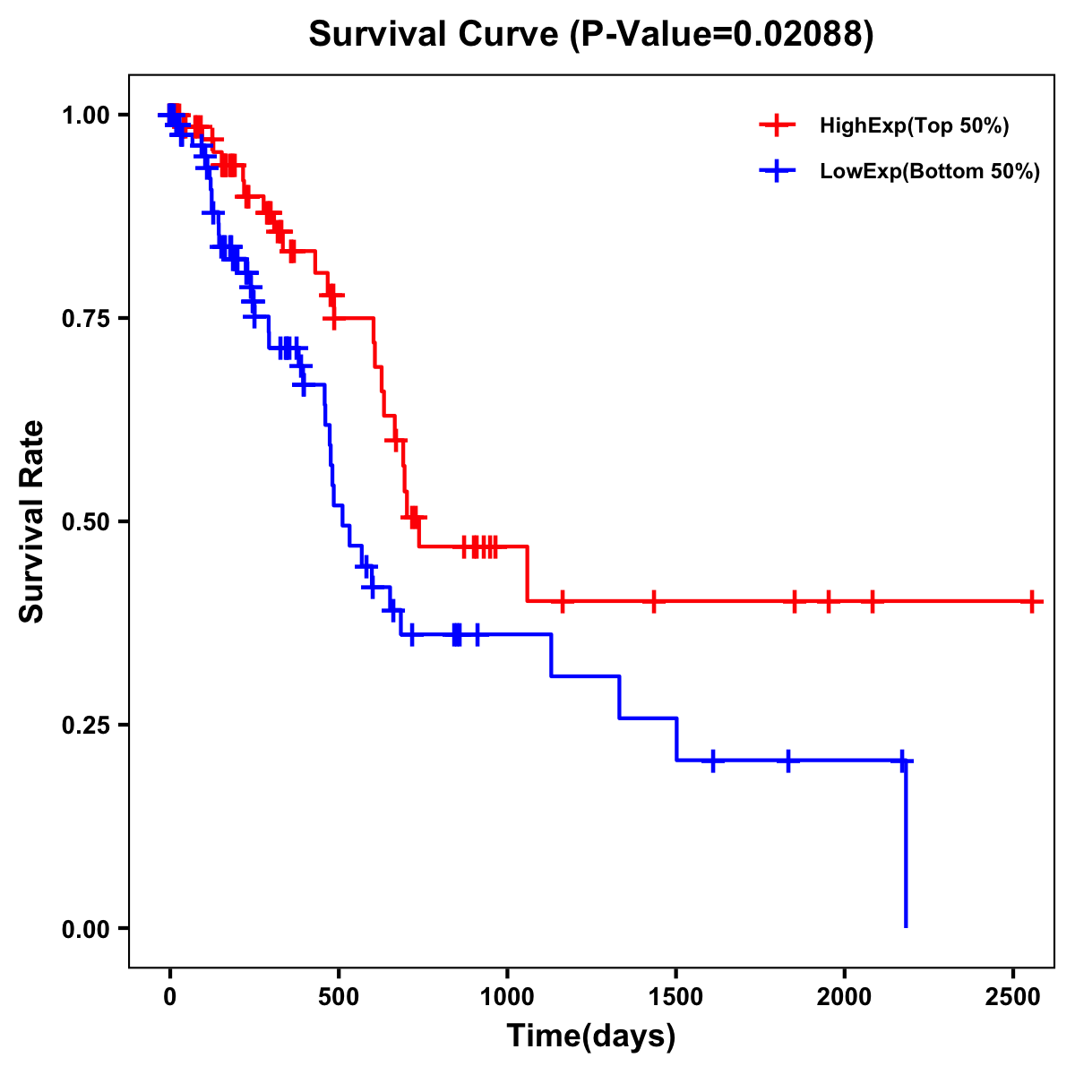| Survival Curve of Pancreatic Cancer of Expression | Survival Curve of Pancreatic Cancer of Methylation | ||