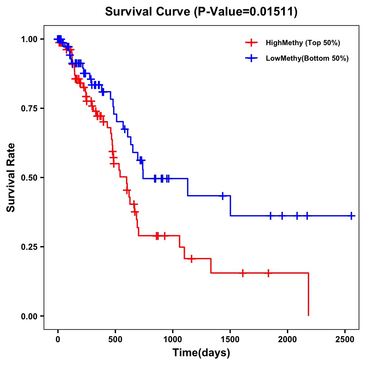 | Survival Curve of Pancreatic Cancer of Expression | Survival Curve of Pancreatic Cancer of Methylation | ||