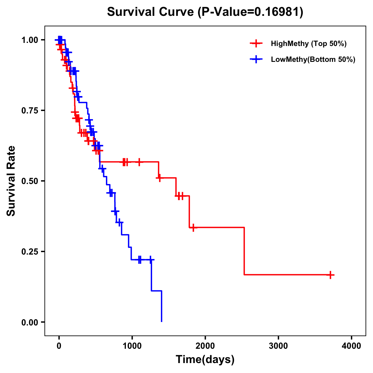 | Survival Curve of Esophagus Cancer of Expression | Survival Curve of Esophagus Cancer of Methylation | ||