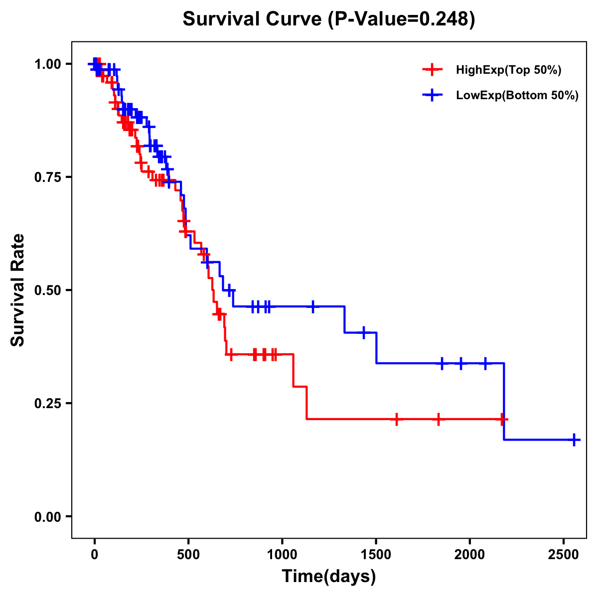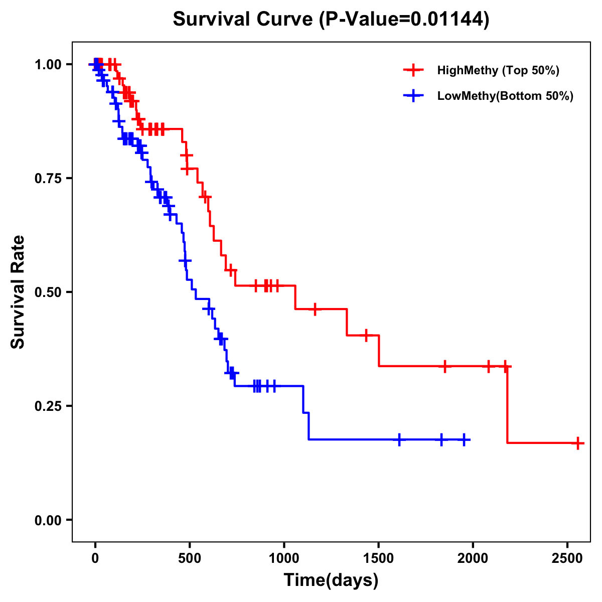 | Survival Curve of Pancreatic Cancer of Expression | Survival Curve of Pancreatic Cancer of Methylation | ||
