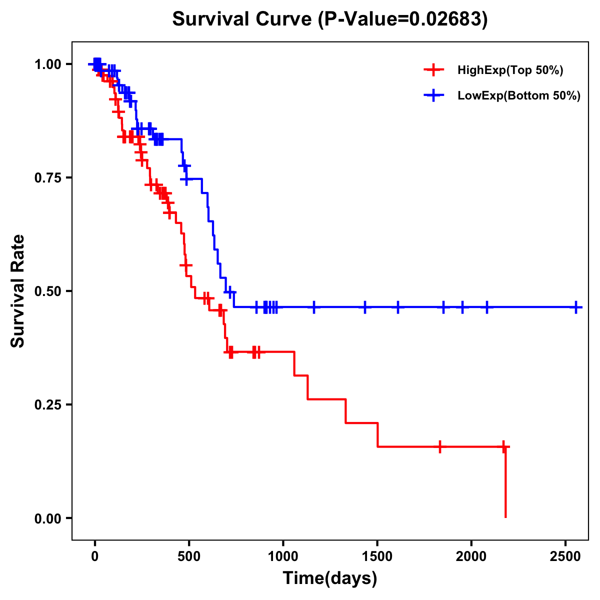 | Survival Curve of Pancreatic Cancer of Expression | Survival Curve of Pancreatic Cancer of Methylation | ||